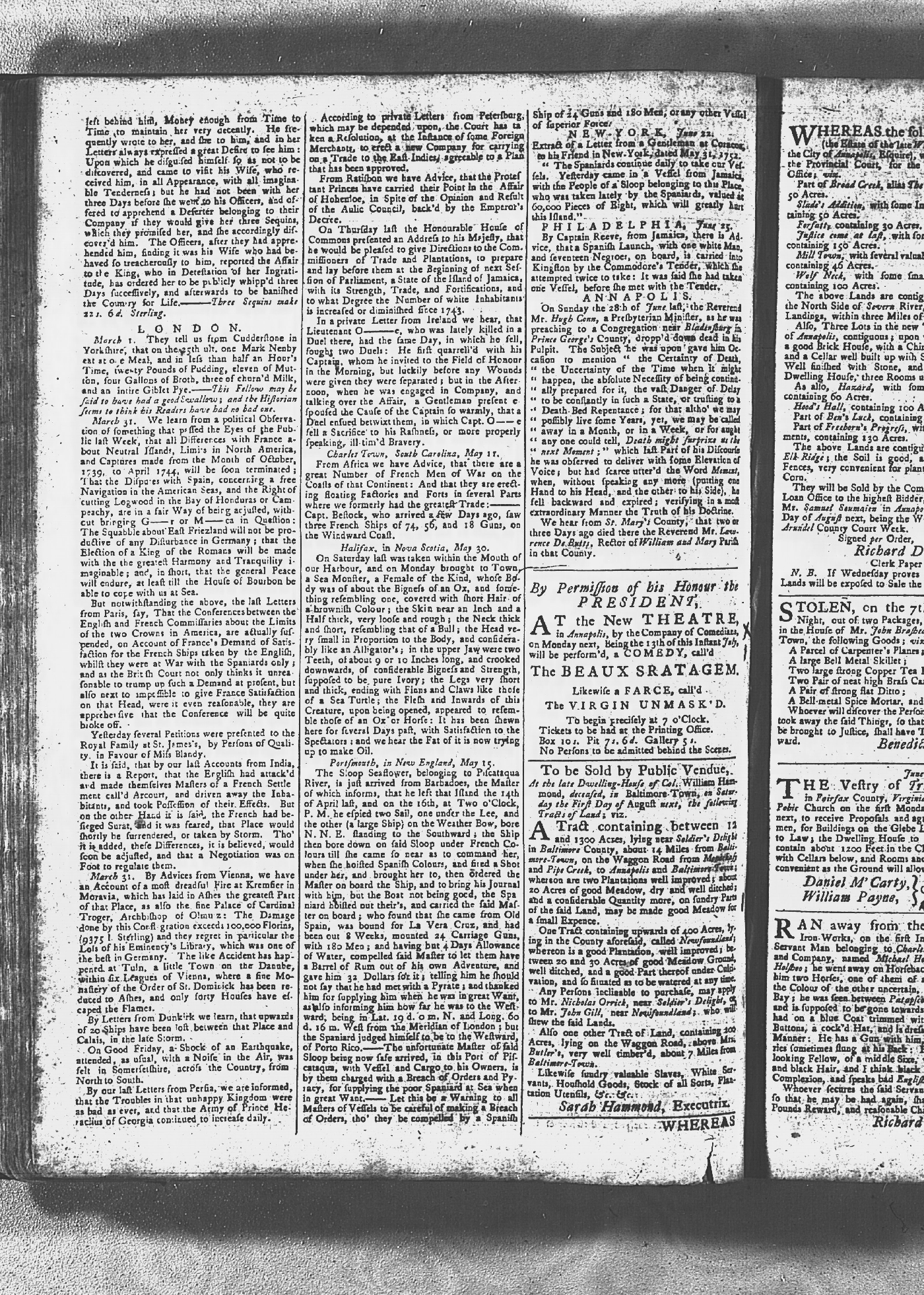 Maryland Gazette Collection MSA SC 2731 January 2, 1752 - October 19, 1758 M 1279 A Publication of the Archives of Maryland Online Image No: 130 Enlarge and print image (3M) |