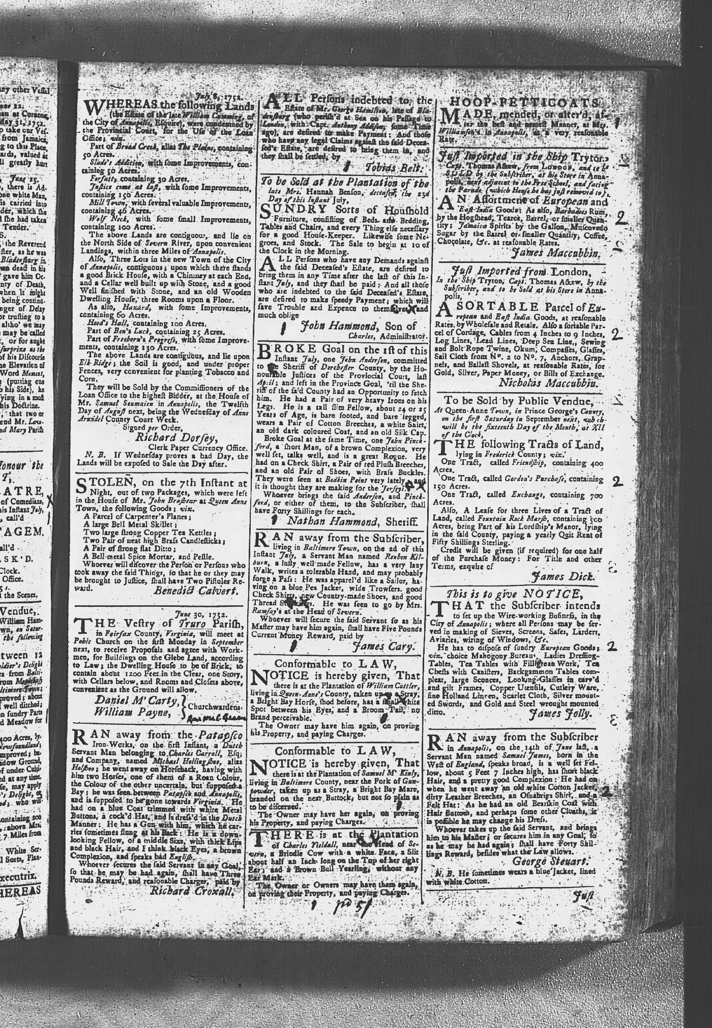 Maryland Gazette Collection MSA SC 2731 January 2, 1752 - October 19, 1758 M 1279 A Publication of the Archives of Maryland Online Image No: 131 Enlarge and print image (3M) |