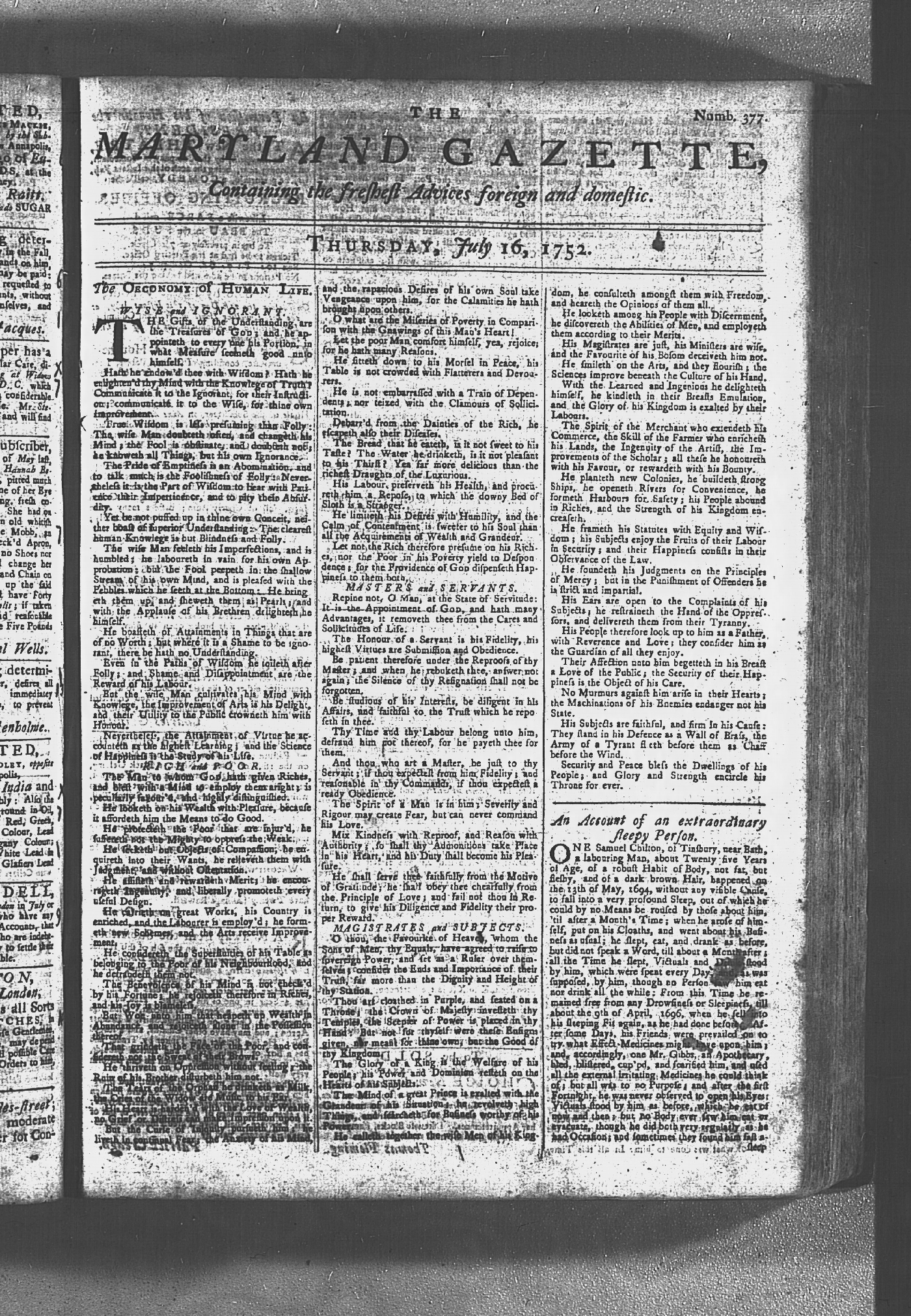 Maryland Gazette Collection MSA SC 2731 January 2, 1752 - October 19, 1758 M 1279 A Publication of the Archives of Maryland Online Image No: 133 Enlarge and print image (3M) |