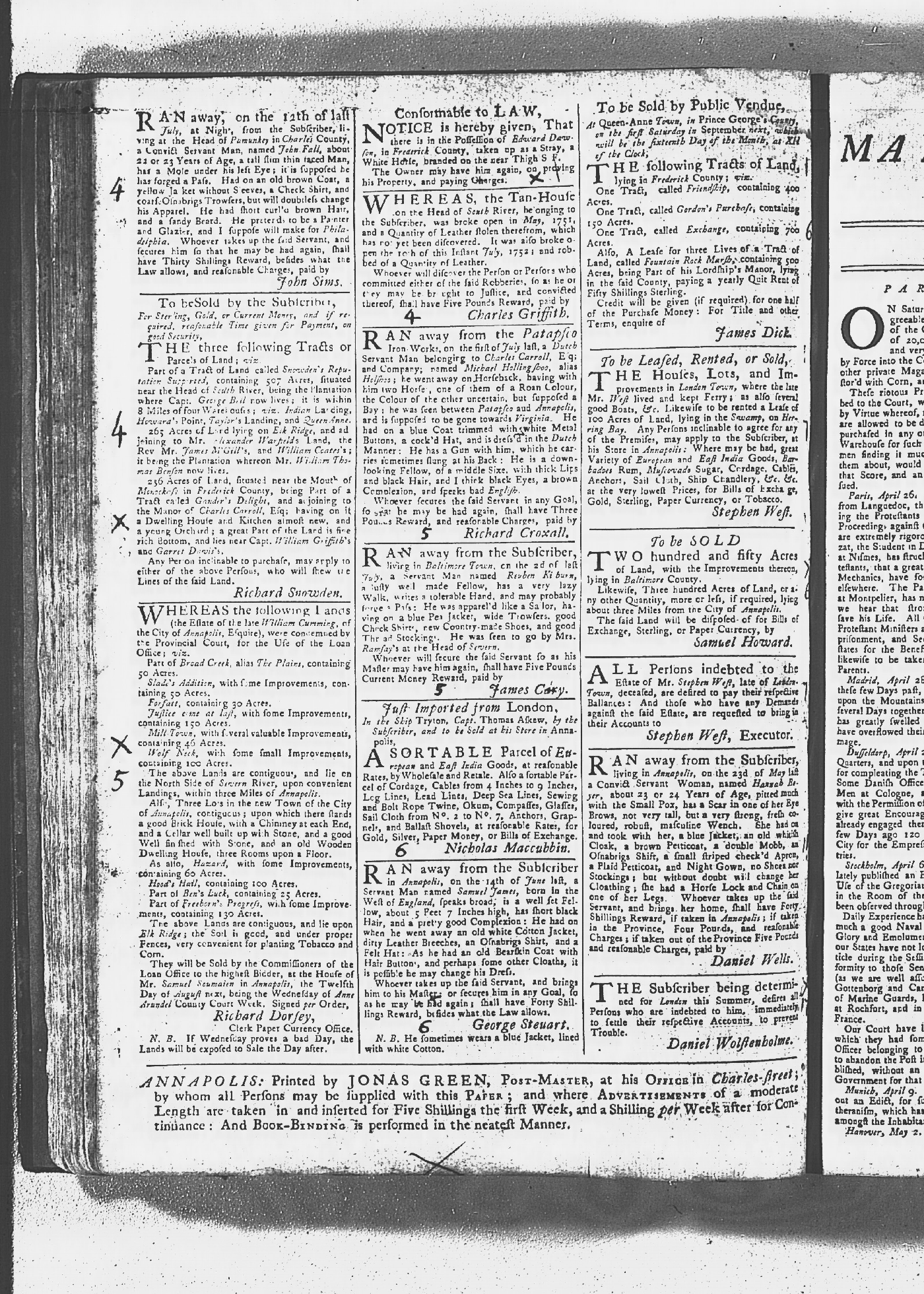 Maryland Gazette Collection MSA SC 2731 January 2, 1752 - October 19, 1758 M 1279 A Publication of the Archives of Maryland Online Image No: 148 Enlarge and print image (3M) |