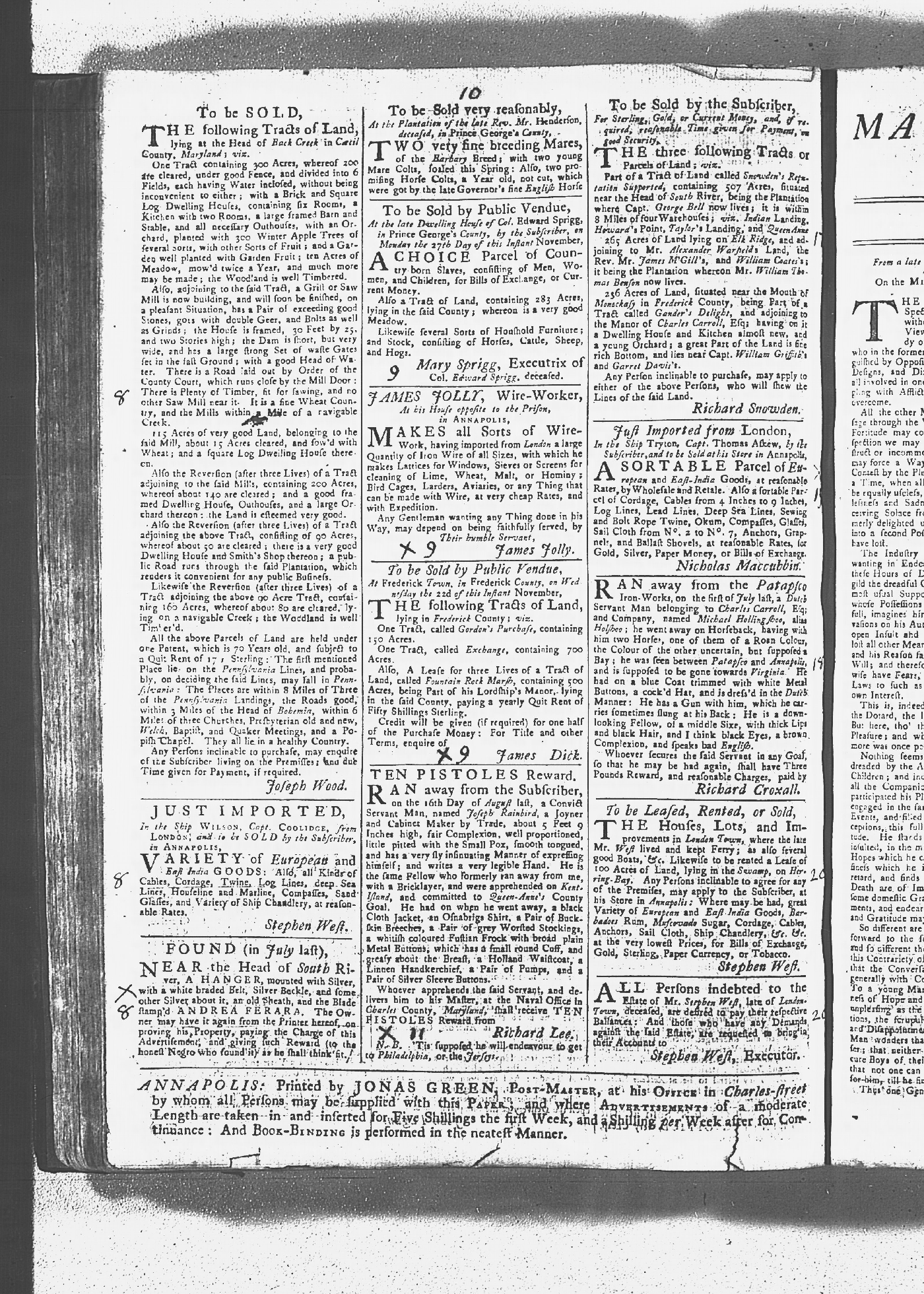 Maryland Gazette Collection MSA SC 2731 January 2, 1752 - October 19, 1758 M 1279 A Publication of the Archives of Maryland Online Image No: 203 Enlarge and print image (3M) |