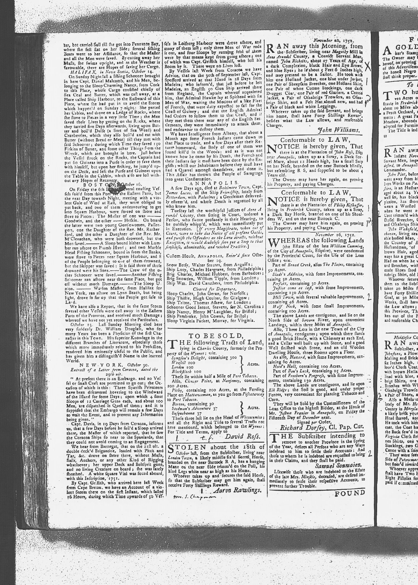 Maryland Gazette Collection MSA SC 2731 January 2, 1752 - October 19, 1758 M 1279 A Publication of the Archives of Maryland Online Image No: 205 Enlarge and print image (3M) |