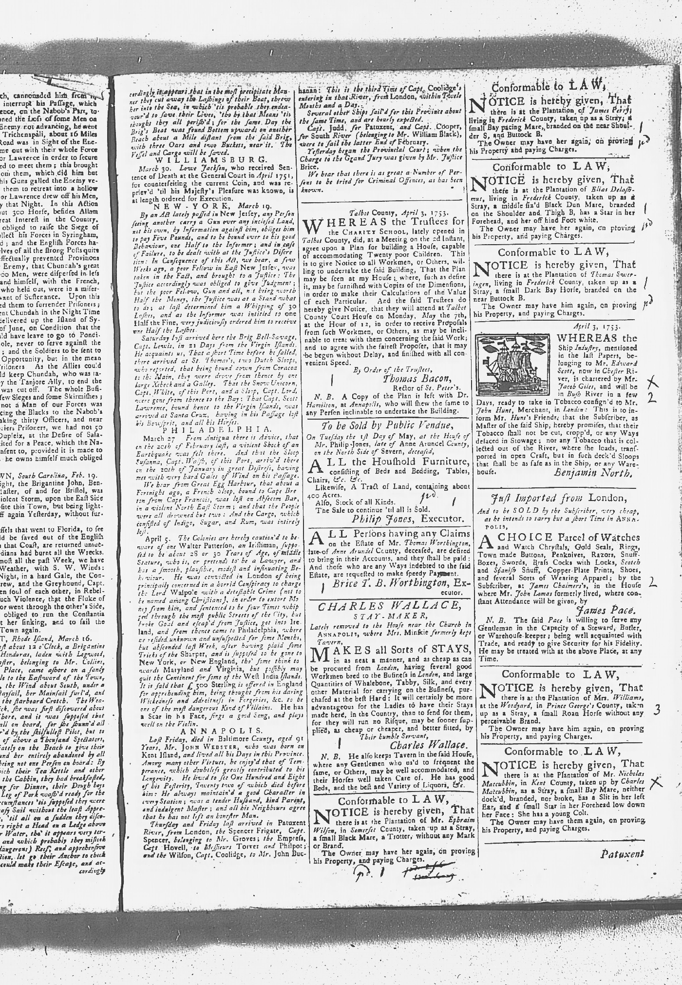 Maryland Gazette Collection MSA SC 2731 January 2, 1752 - October 19, 1758 M 1279 A Publication of the Archives of Maryland Online Image No: 278 Enlarge and print image (3M) |