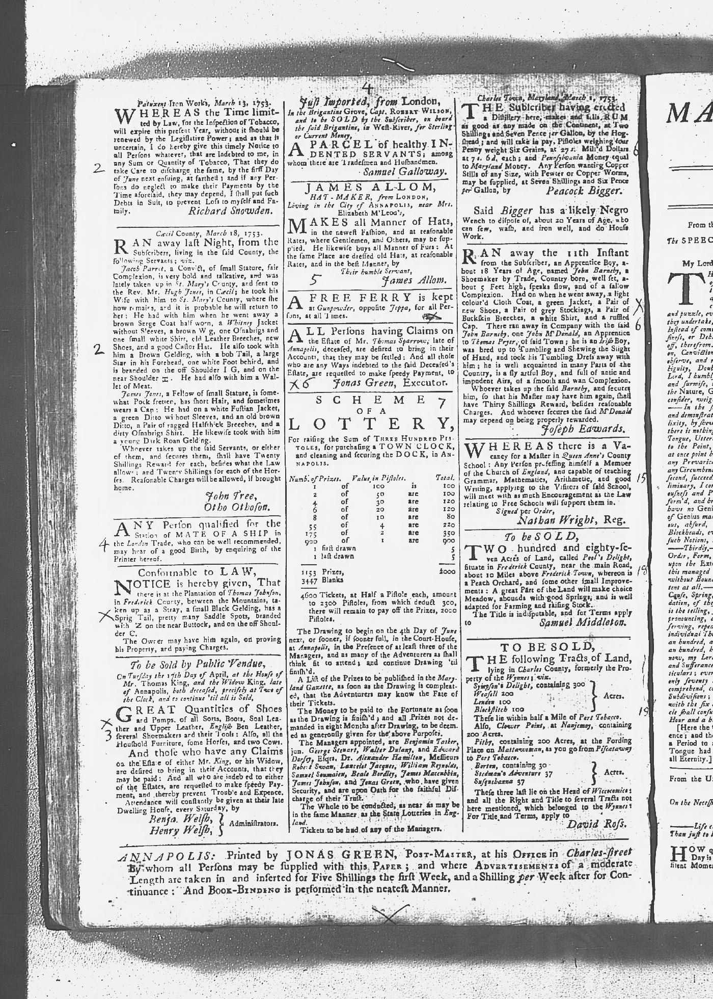 Maryland Gazette Collection MSA SC 2731 January 2, 1752 - October 19, 1758 M 1279 A Publication of the Archives of Maryland Online Image No: 279 Enlarge and print image (3M) |