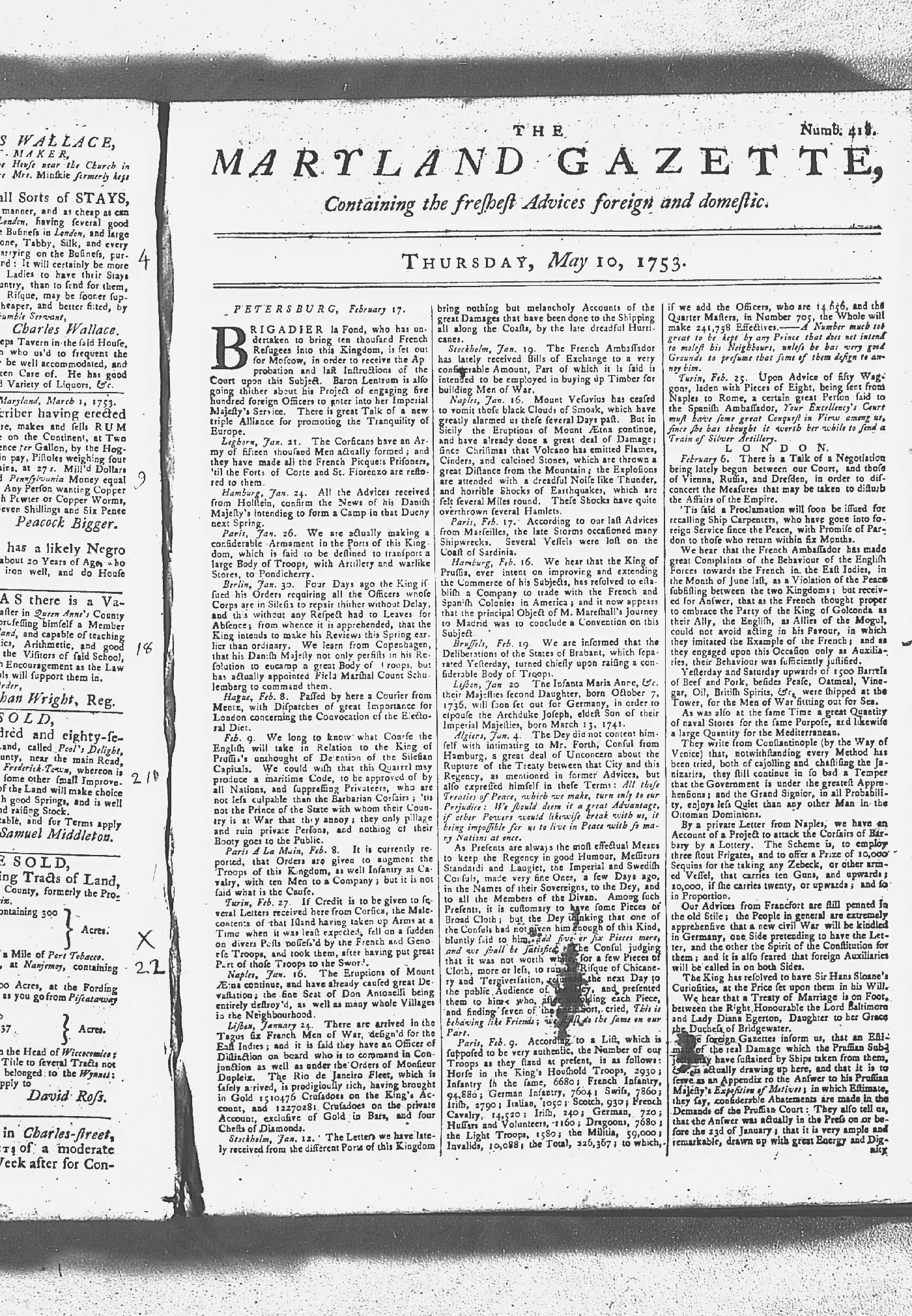 Maryland Gazette Collection MSA SC 2731 January 2, 1752 - October 19, 1758 M 1279 A Publication of the Archives of Maryland Online Image No: 292 Enlarge and print image (3M) |