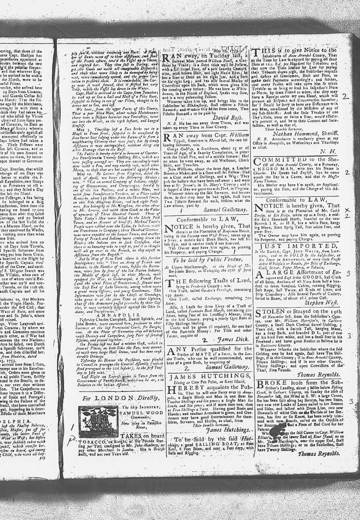 Maryland Gazette Collection MSA SC 2731 January 2, 1752 - October 19, 1758 M 1279 A Publication of the Archives of Maryland Online Image No: 298 Enlarge and print image (3M) |