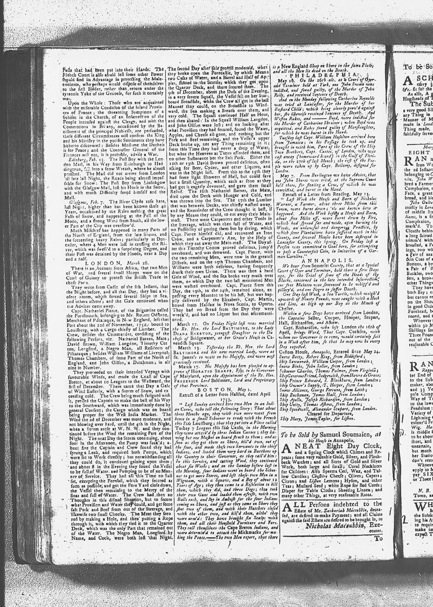Maryland Gazette Collection MSA SC 2731 January 2, 1752 - October 19, 1758 M 1279 A Publication of the Archives of Maryland Online Image No: 311 Enlarge and print image (3M) |