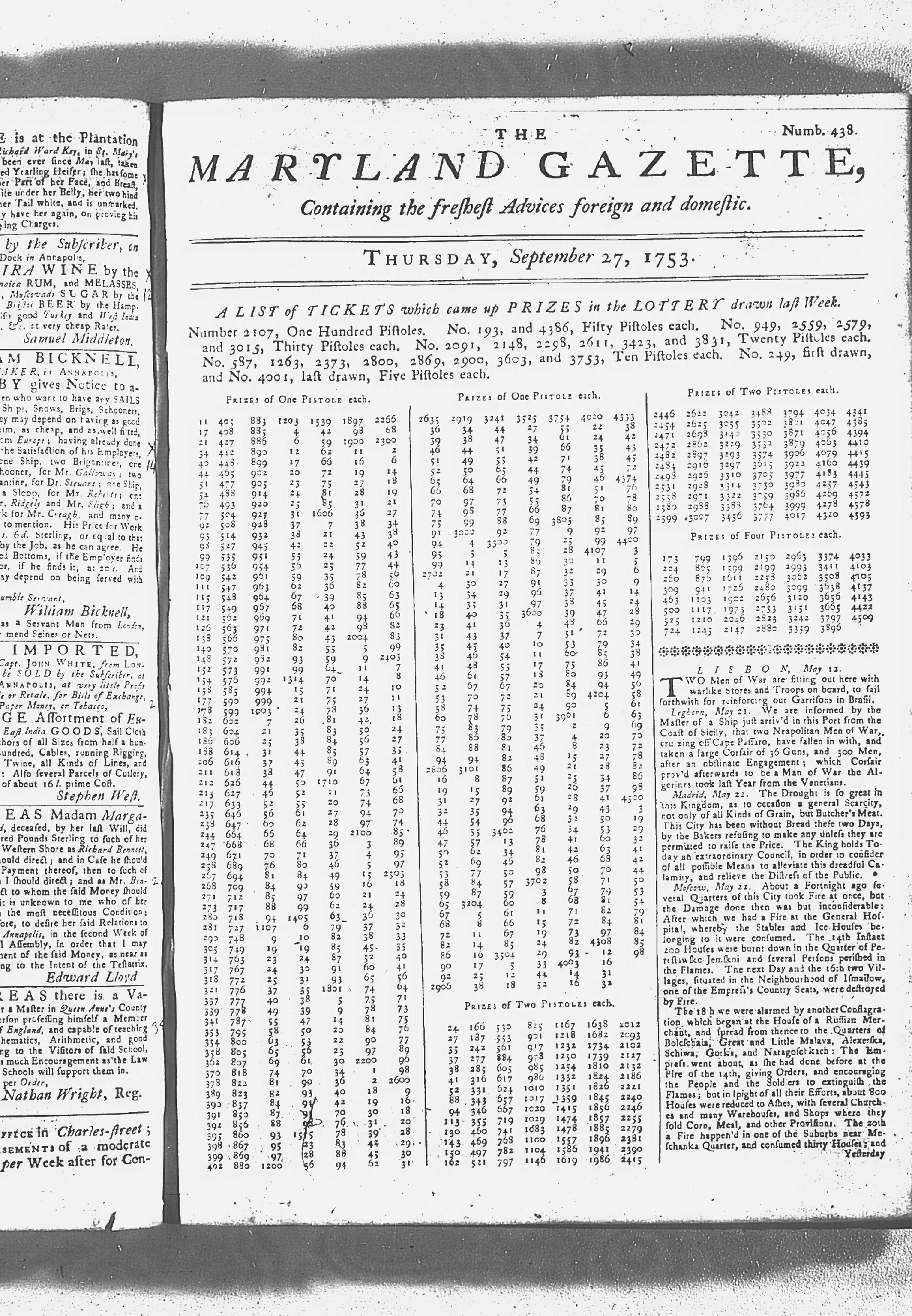 Maryland Gazette Collection MSA SC 2731 January 2, 1752 - October 19, 1758 M 1279 A Publication of the Archives of Maryland Online Image No: 374 Enlarge and print image (2M) |