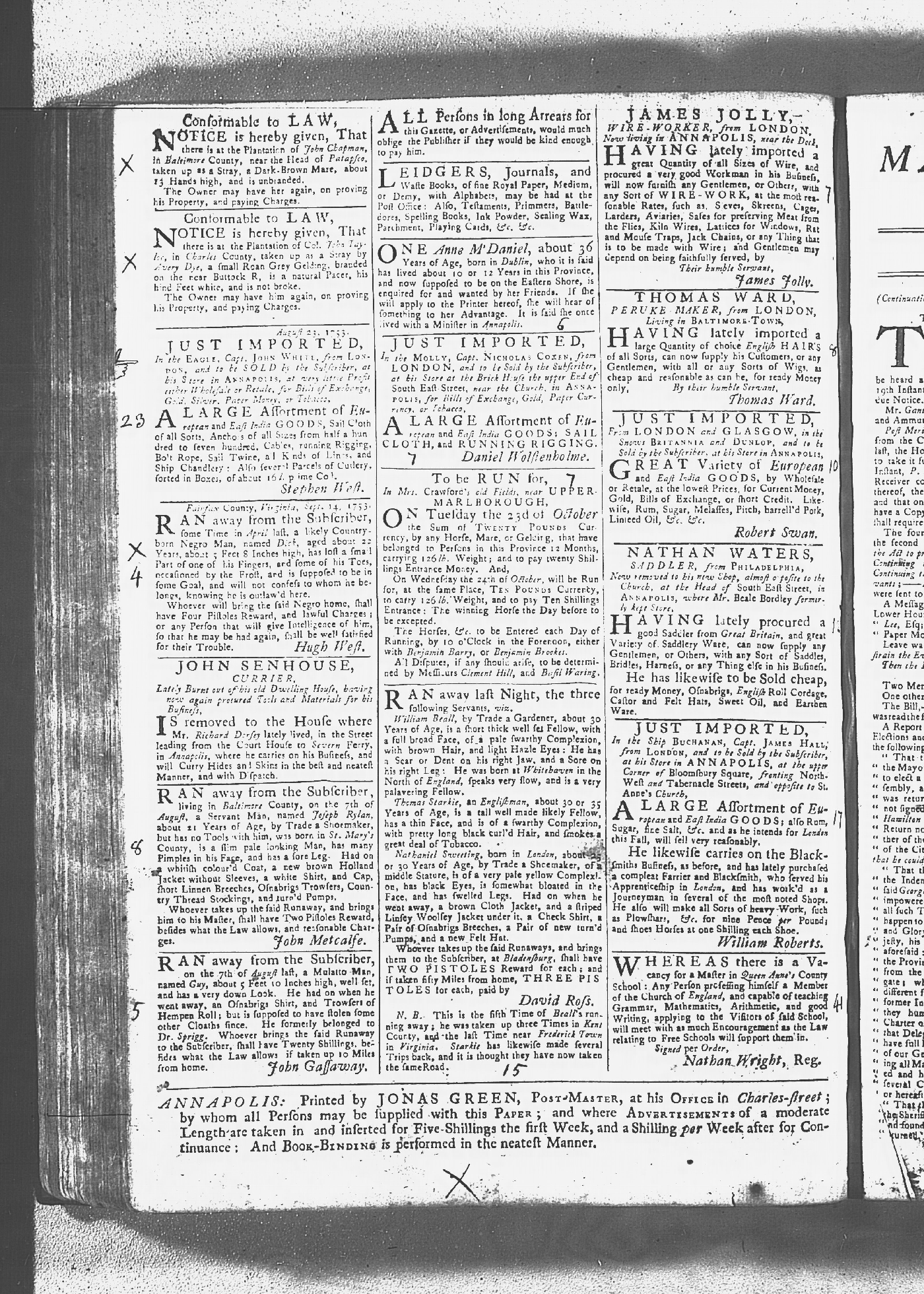 Maryland Gazette Collection MSA SC 2731 January 2, 1752 - October 19, 1758 M 1279 A Publication of the Archives of Maryland Online Image No: 385 Enlarge and print image (3M) |