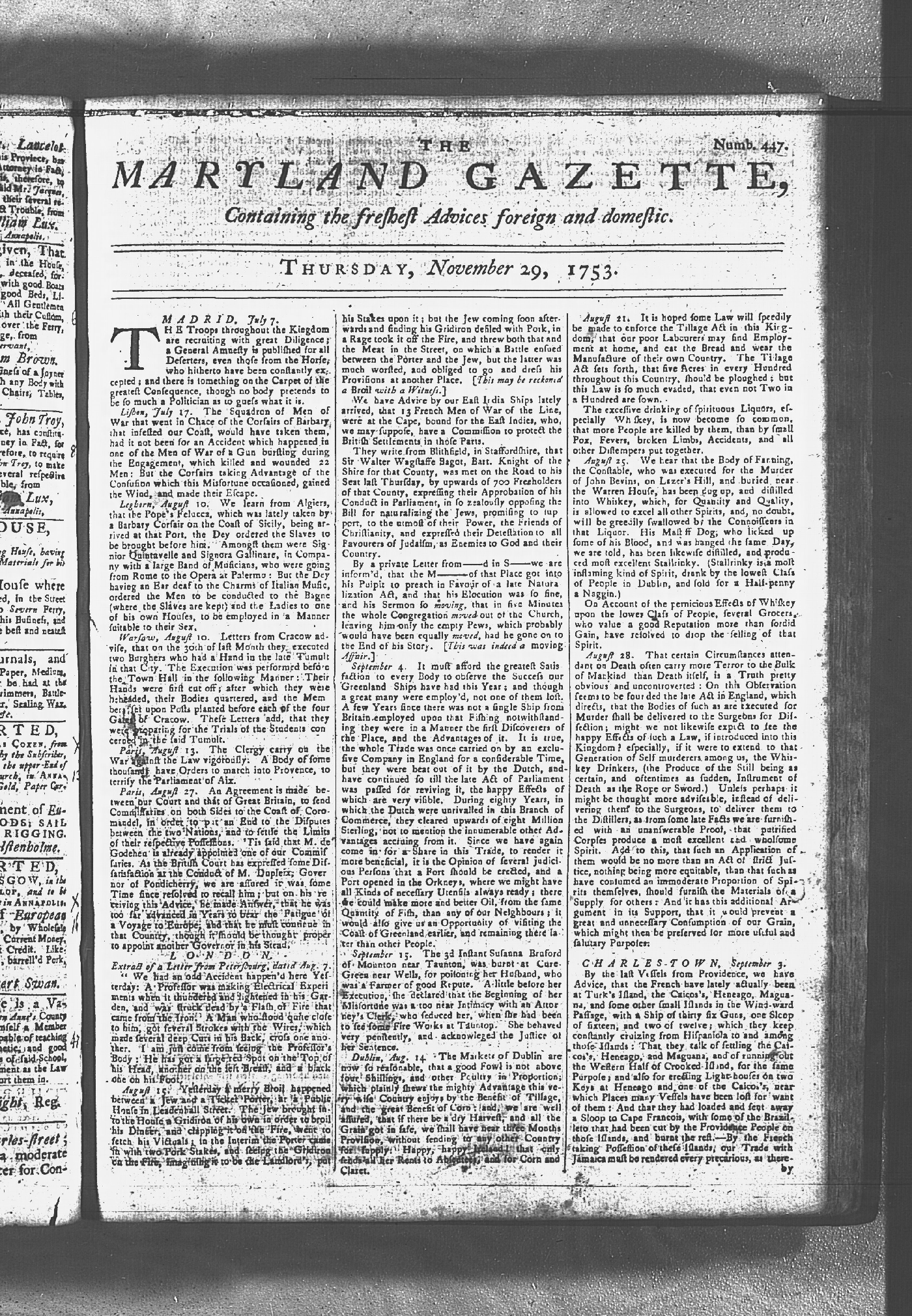 Maryland Gazette Collection MSA SC 2731 January 2, 1752 - October 19, 1758 M 1279 A Publication of the Archives of Maryland Online Image No: 410 Enlarge and print image (3M) |