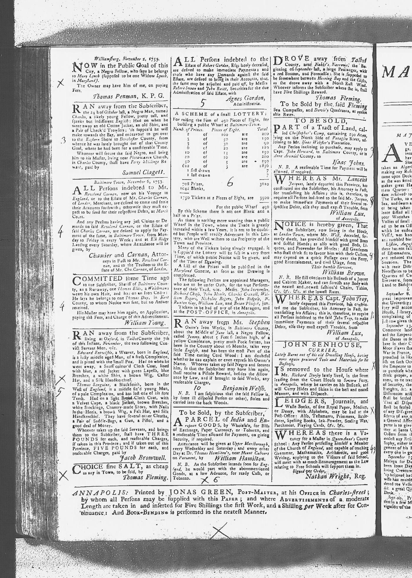 Maryland Gazette Collection MSA SC 2731 January 2, 1752 - October 19, 1758 M 1279 A Publication of the Archives of Maryland Online Image No: 417 Enlarge and print image (3M) |