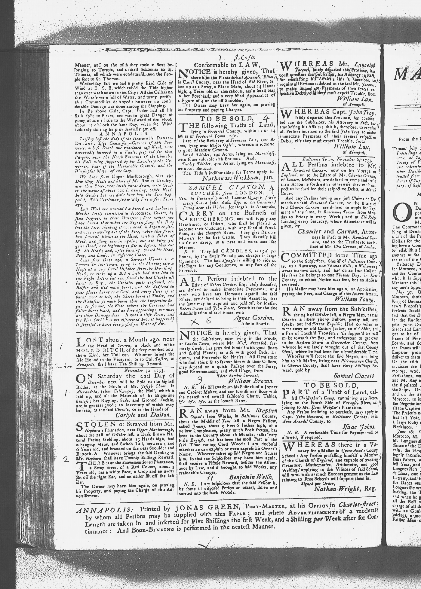 Maryland Gazette Collection MSA SC 2731 January 2, 1752 - October 19, 1758 M 1279 A Publication of the Archives of Maryland Online Image No: 419 Enlarge and print image (3M) |