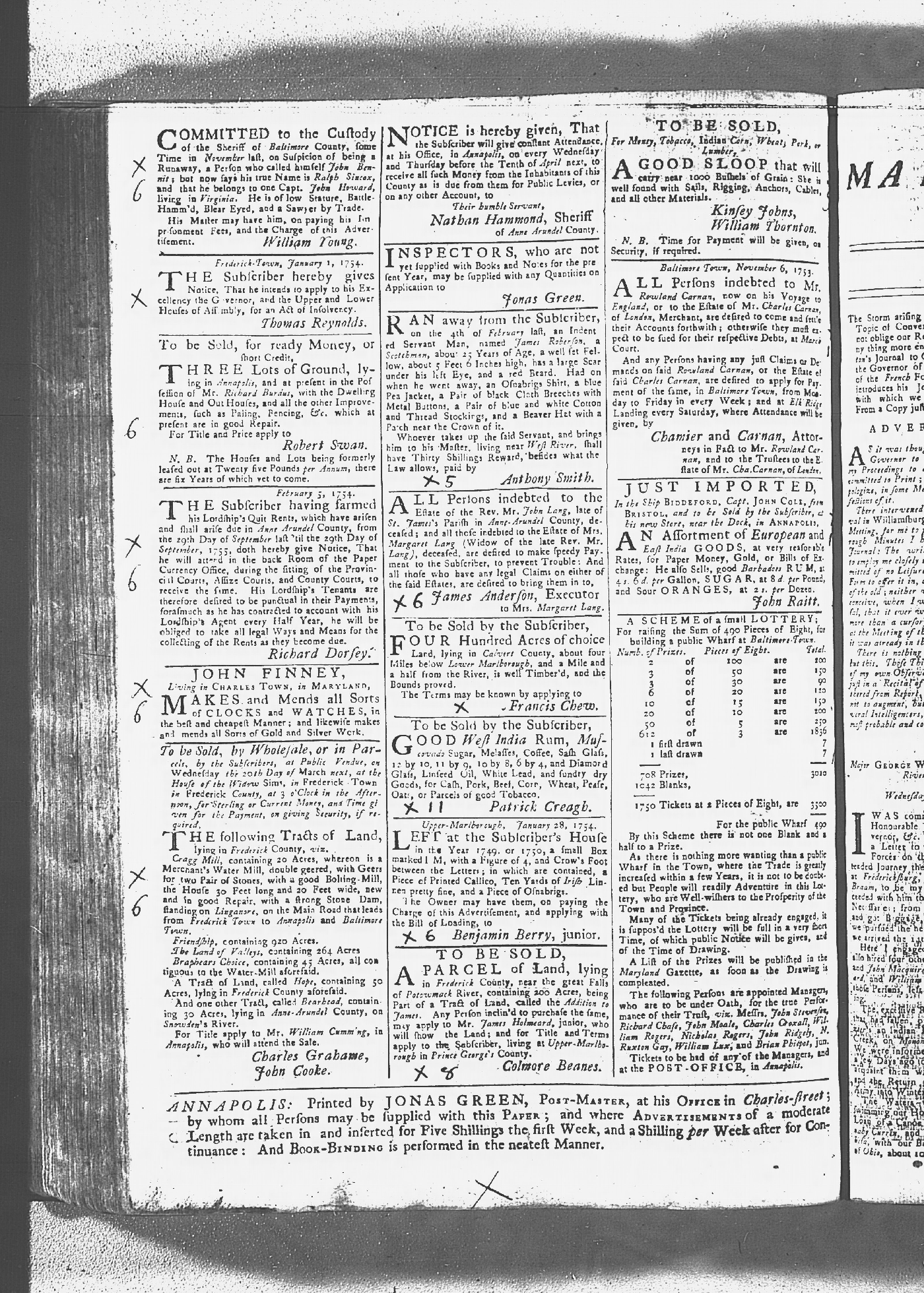 Maryland Gazette Collection MSA SC 2731 January 2, 1752 - October 19, 1758 M 1279 A Publication of the Archives of Maryland Online Image No: 459 Enlarge and print image (3M) |