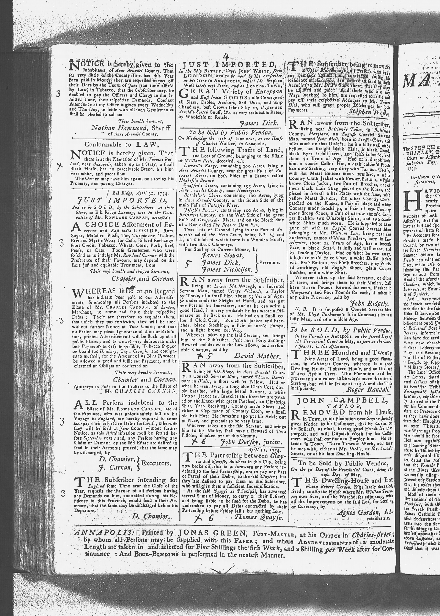 Maryland Gazette Collection MSA SC 2731 January 2, 1752 - October 19, 1758 M 1279 A Publication of the Archives of Maryland Online Image No: 497 Enlarge and print image (3M) |
