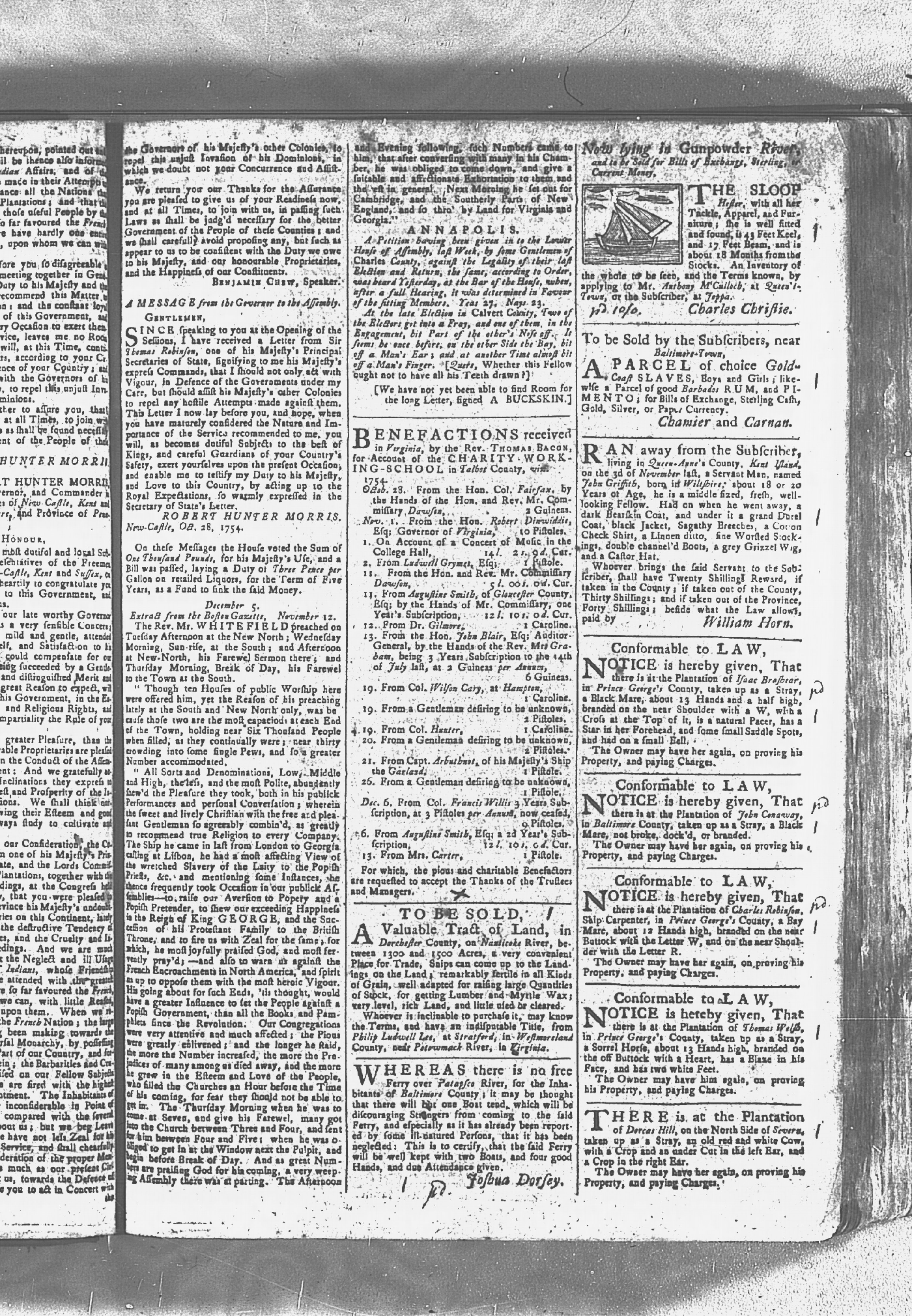 Maryland Gazette Collection MSA SC 2731 January 2, 1752 - October 19, 1758 M 1279 A Publication of the Archives of Maryland Online Image No: 626 Enlarge and print image (3M) |