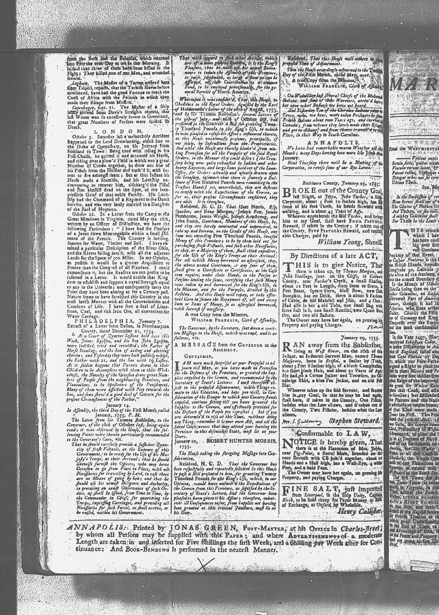 Maryland Gazette Collection MSA SC 2731 January 2, 1752 - October 19, 1758 M 1279 A Publication of the Archives of Maryland Online Image No: 645 Enlarge and print image (3M) |