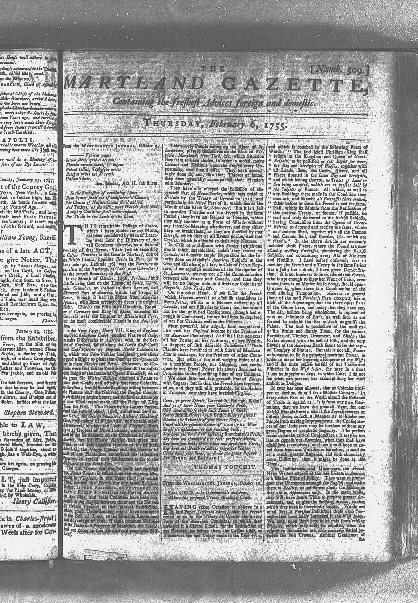 Maryland Gazette Collection MSA SC 2731 January 2, 1752 - October 19, 1758 M 1279 A Publication of the Archives of Maryland Online Image No: 646 Enlarge and print image (3M) |