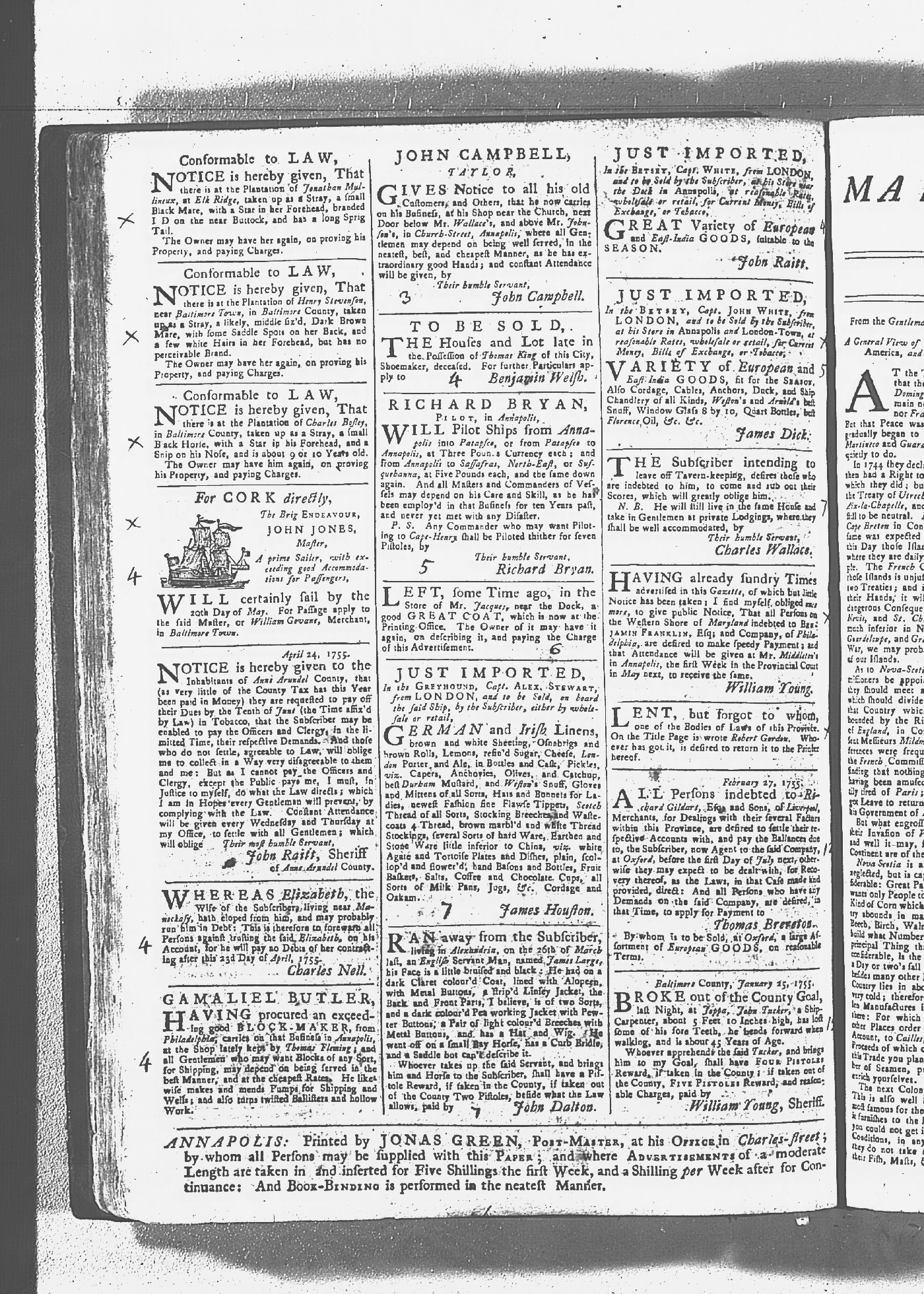 Maryland Gazette Collection MSA SC 2731 January 2, 1752 - October 19, 1758 M 1279 A Publication of the Archives of Maryland Online Image No: 713 Enlarge and print image (3M) |