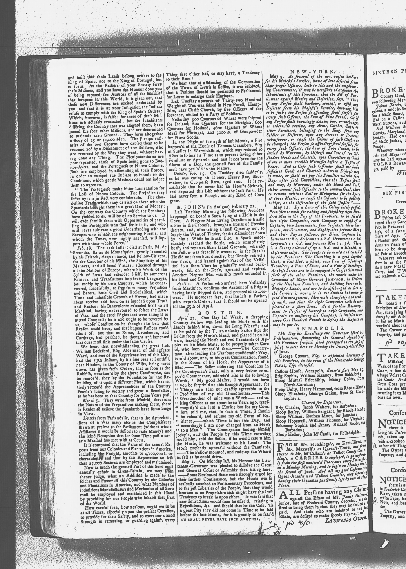Maryland Gazette Collection MSA SC 2731 January 2, 1752 - October 19, 1758 M 1279 A Publication of the Archives of Maryland Online Image No: 719 Enlarge and print image (3M) |