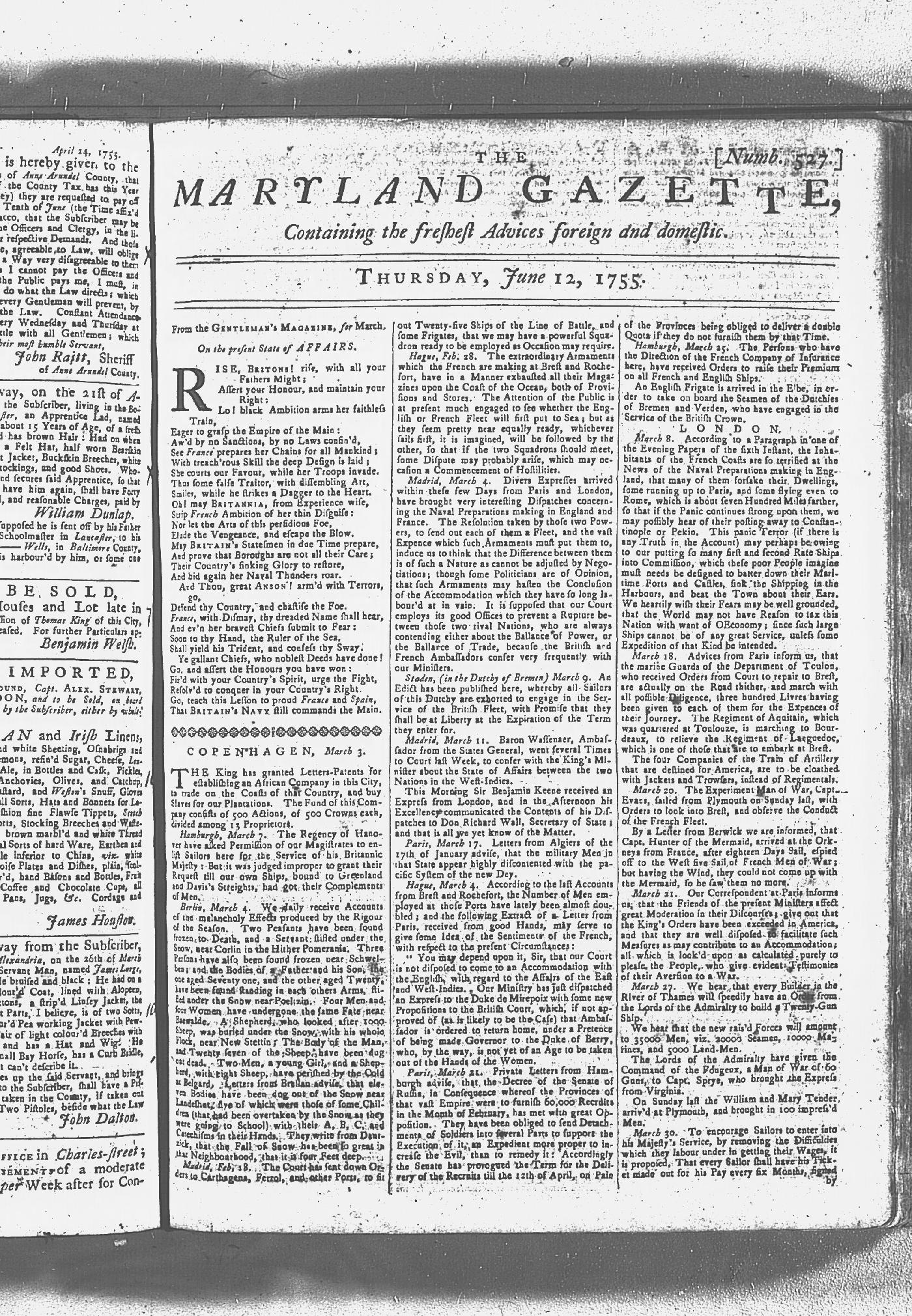 Maryland Gazette Collection MSA SC 2731 January 2, 1752 - October 19, 1758 M 1279 A Publication of the Archives of Maryland Online Image No: 726 Enlarge and print image (3M) |