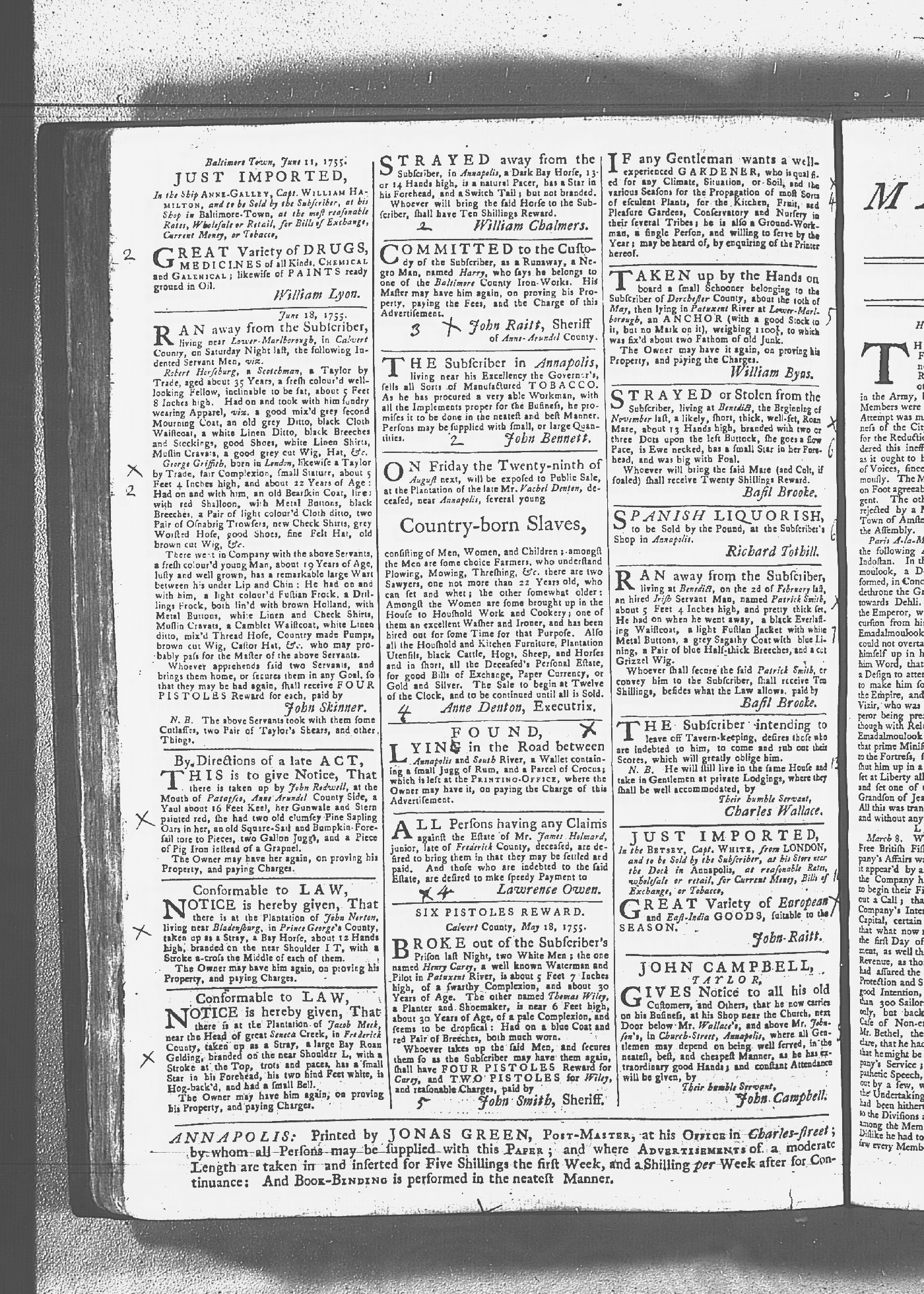 Maryland Gazette Collection MSA SC 2731 January 2, 1752 - October 19, 1758 M 1279 A Publication of the Archives of Maryland Online Image No: 737 Enlarge and print image (3M) |