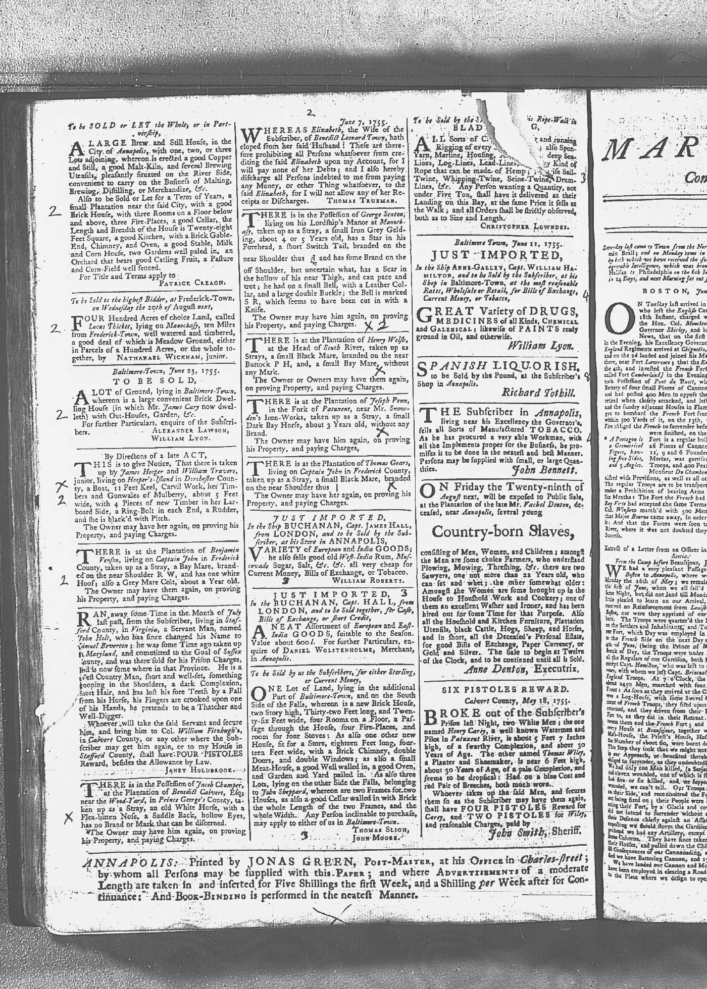 Maryland Gazette Collection MSA SC 2731 January 2, 1752 - October 19, 1758 M 1279 A Publication of the Archives of Maryland Online Image No: 745 Enlarge and print image (3M) |
