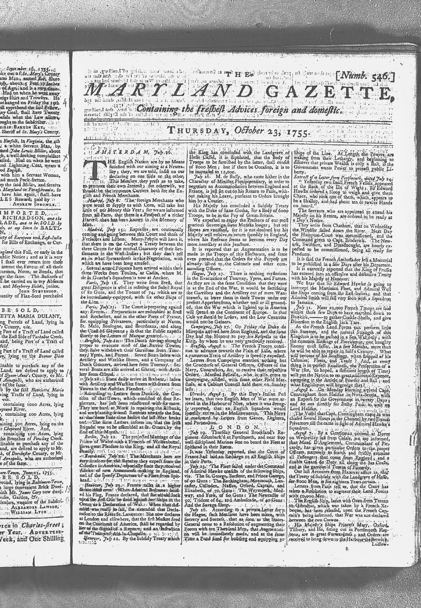 Maryland Gazette Collection MSA SC 2731 January 2, 1752 - October 19, 1758 M 1279 A Publication of the Archives of Maryland Online Image No: 802 Enlarge and print image (3M) |