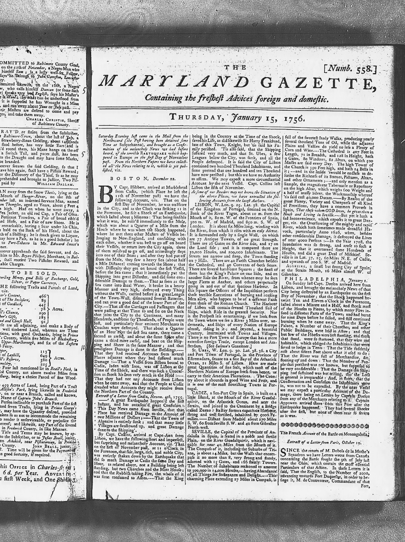 Maryland Gazette Collection MSA SC 2731 January 2, 1752 - October 19, 1758 M 1279 A Publication of the Archives of Maryland Online Image No: 854 Enlarge and print image (3M) |