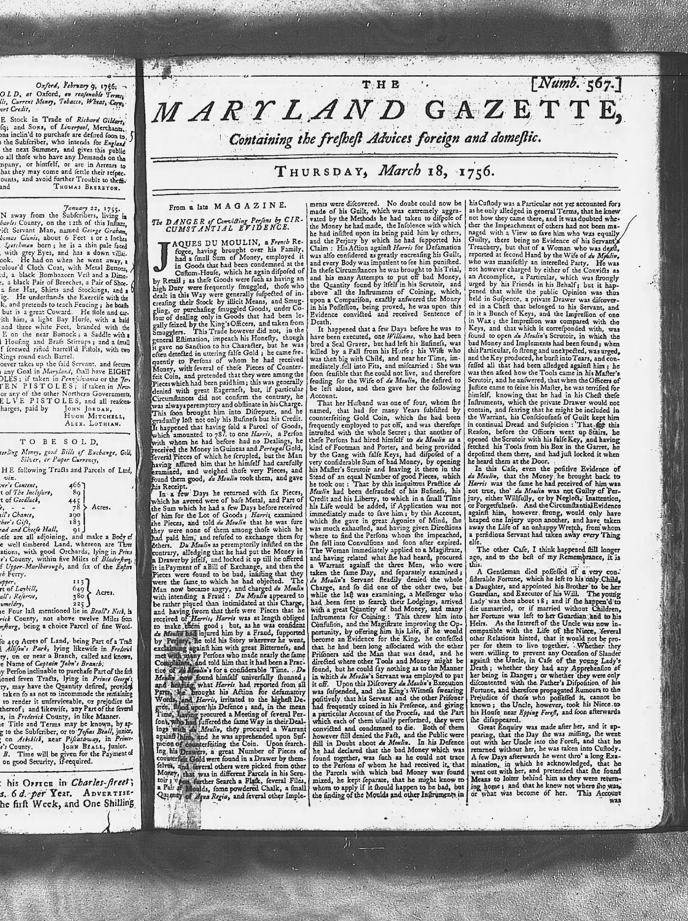 Maryland Gazette Collection MSA SC 2731 January 2, 1752 - October 19, 1758 M 1279 A Publication of the Archives of Maryland Online Image No: 892 Enlarge and print image (3M) |