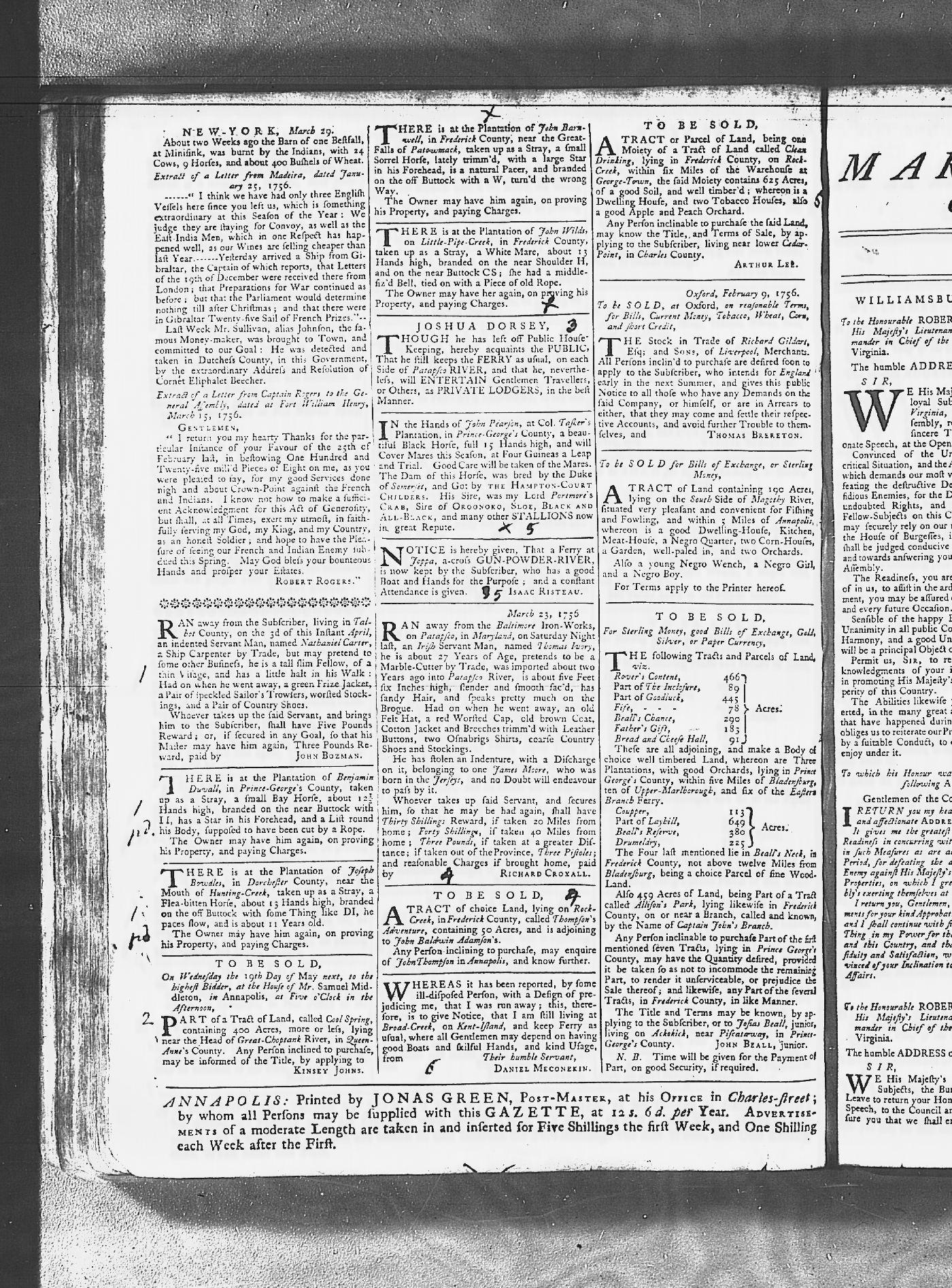 Maryland Gazette Collection MSA SC 2731 January 2, 1752 - October 19, 1758 M 1279 A Publication of the Archives of Maryland Online Image No: 911 Enlarge and print image (3M) |