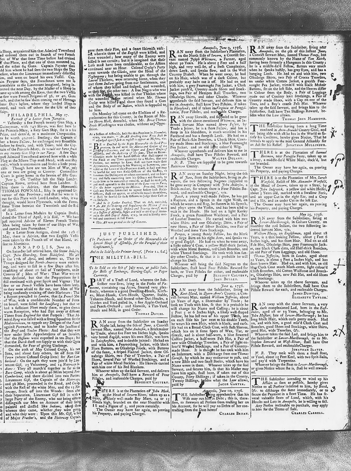 Maryland Gazette Collection MSA SC 2731 January 2, 1752 - October 19, 1758 M 1279 A Publication of the Archives of Maryland Online Image No: 944 Enlarge and print image (3M) |