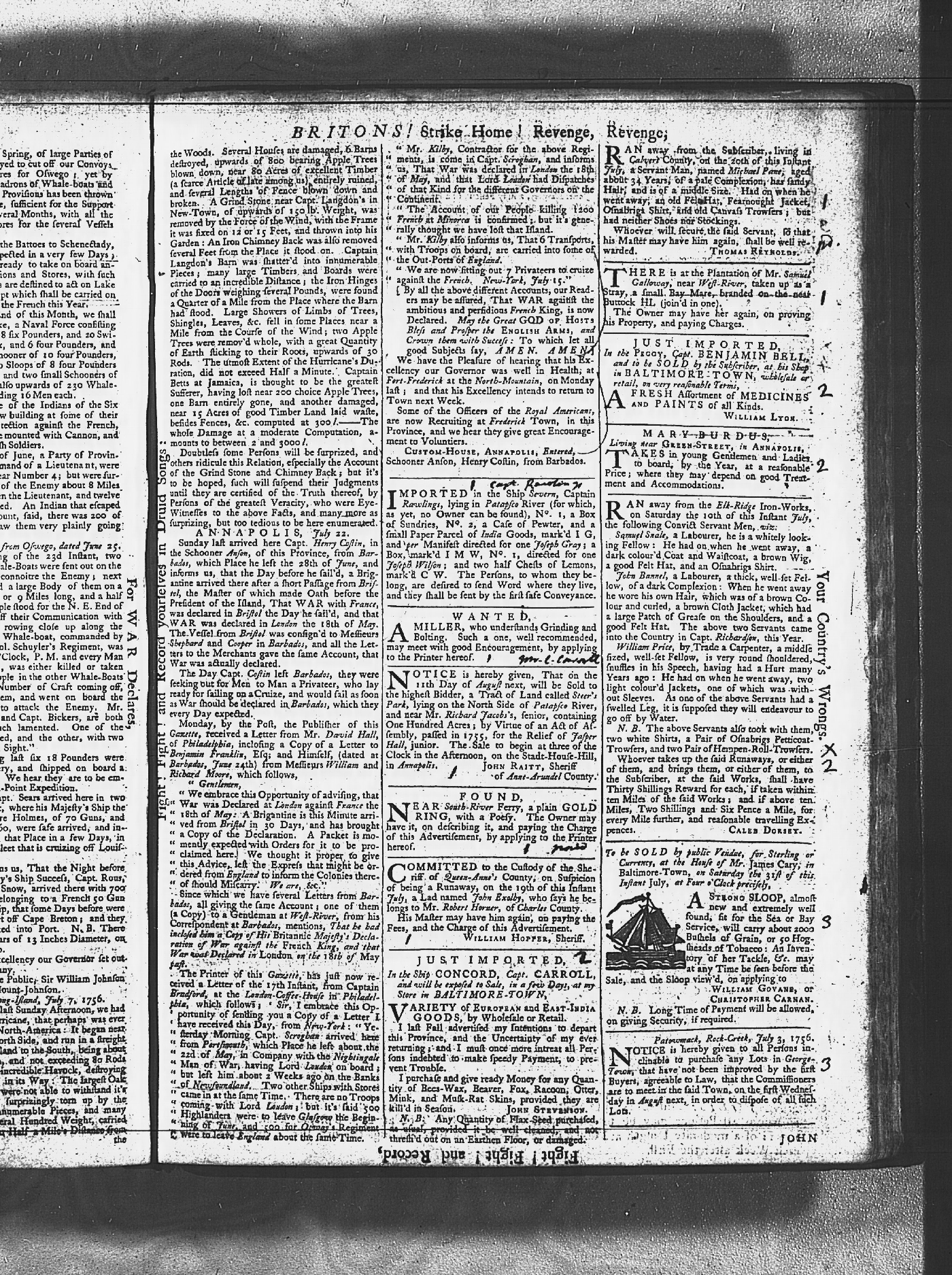Maryland Gazette Collection MSA SC 2731 January 2, 1752 - October 19, 1758 M 1279 A Publication of the Archives of Maryland Online Image No: 972 Enlarge and print image (4M) |