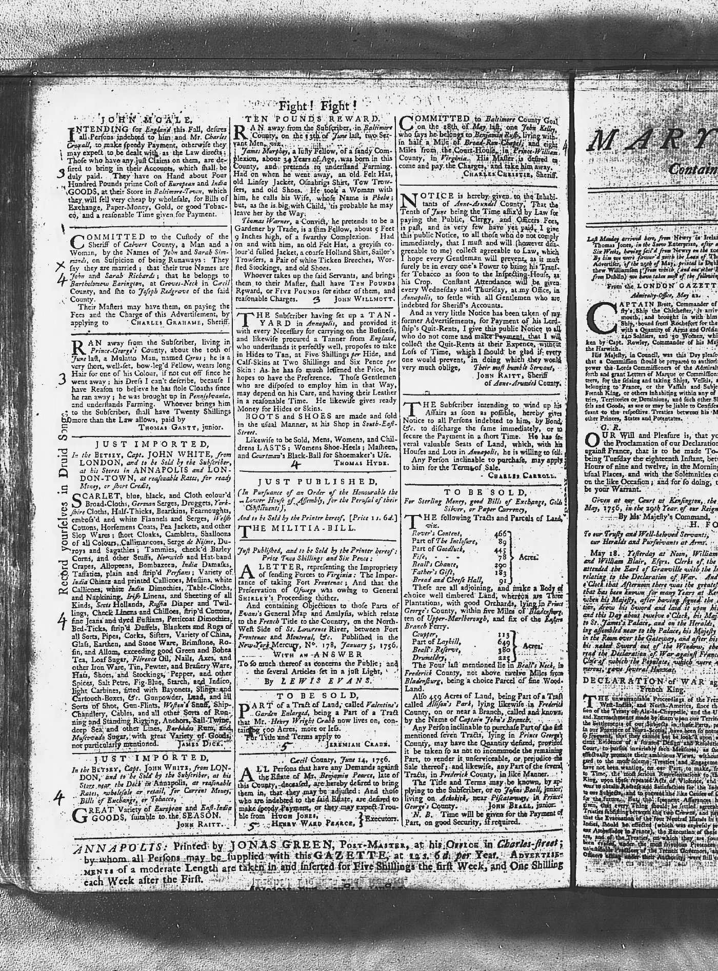Maryland Gazette Collection MSA SC 2731 January 2, 1752 - October 19, 1758 M 1279 A Publication of the Archives of Maryland Online Image No: 973 Enlarge and print image (4M) |