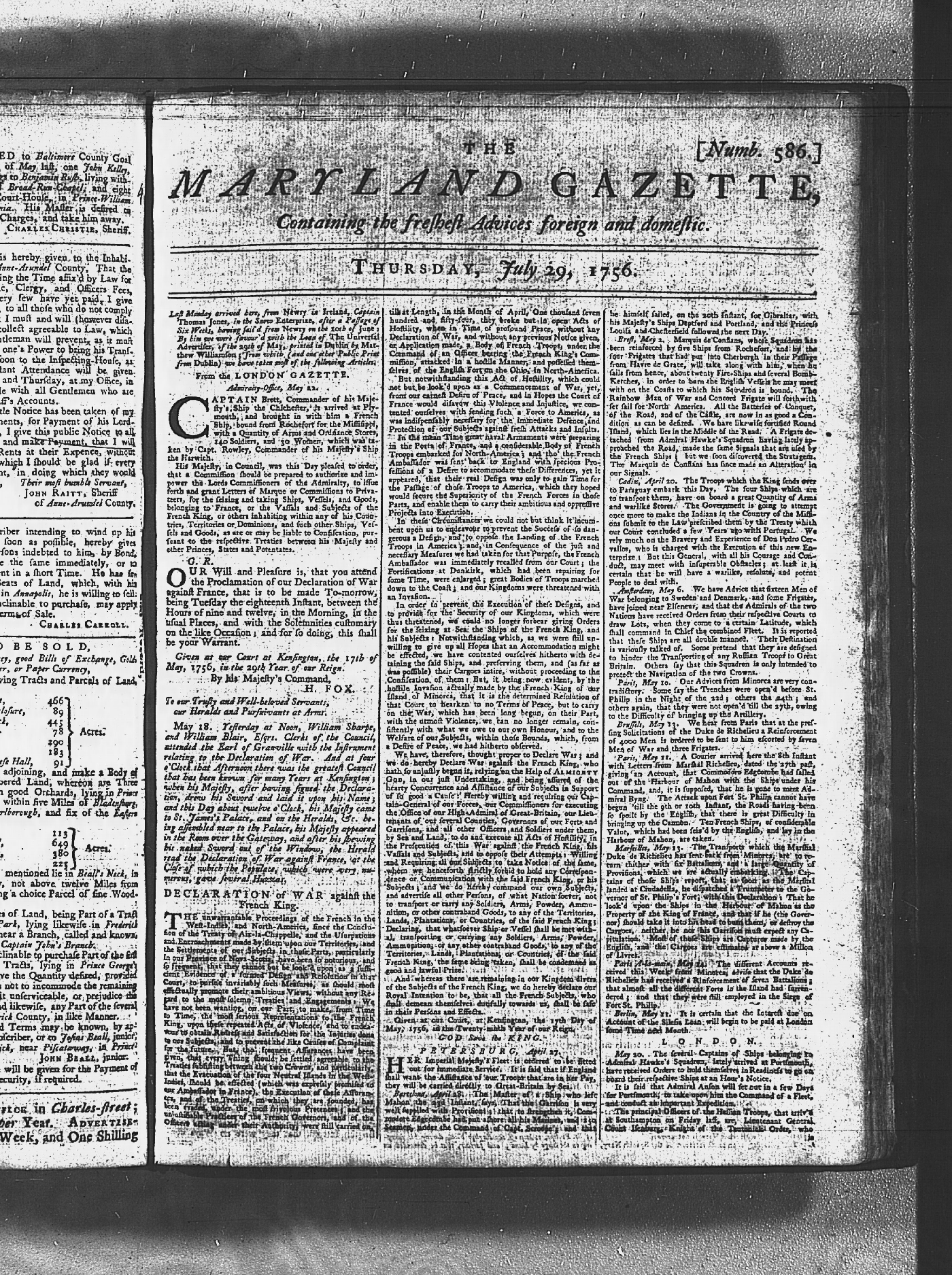 Maryland Gazette Collection MSA SC 2731 January 2, 1752 - October 19, 1758 M 1279 A Publication of the Archives of Maryland Online Image No: 974 Enlarge and print image (4M) |