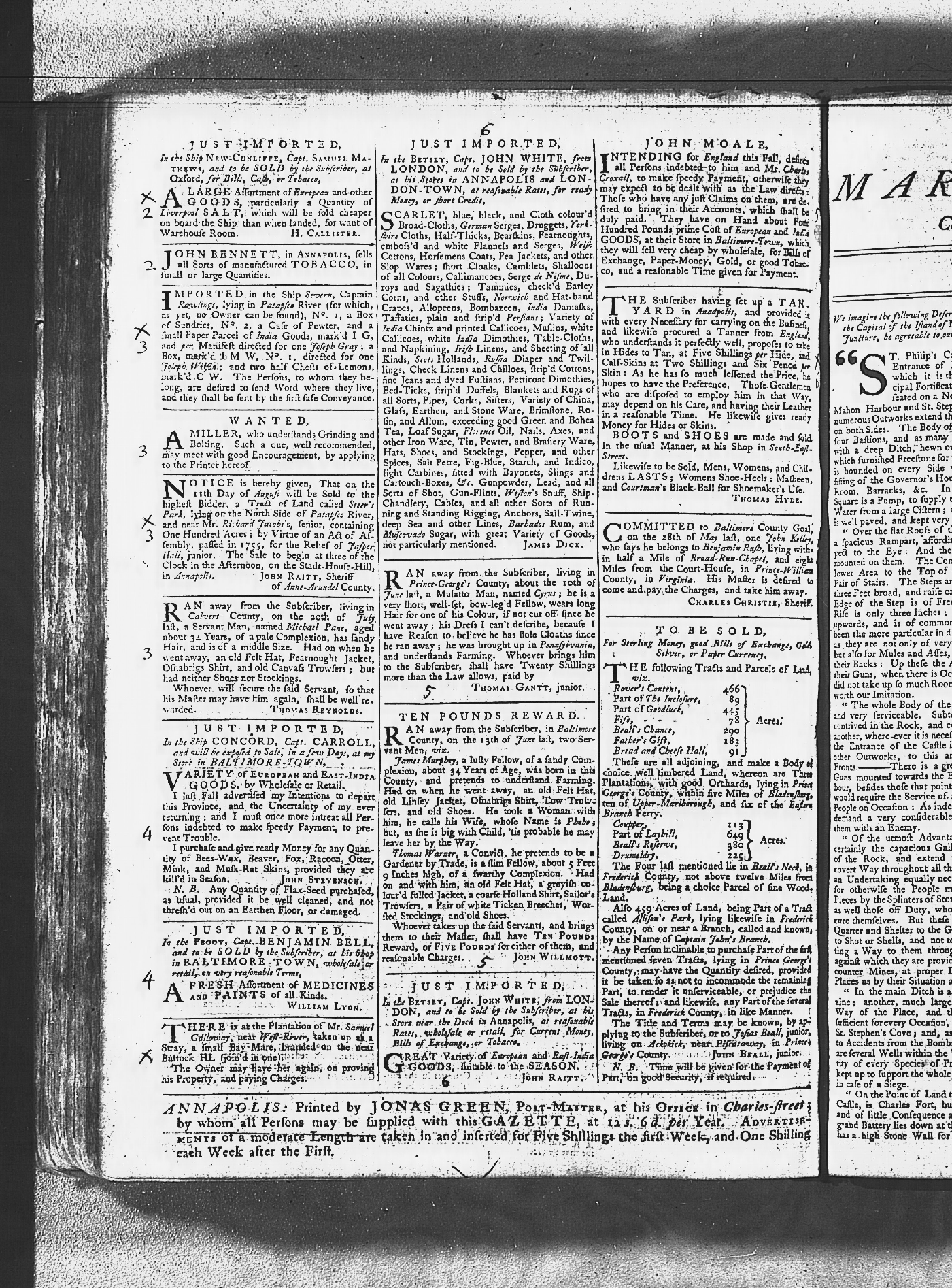 Maryland Gazette Collection MSA SC 2731 January 2, 1752 - October 19, 1758 M 1279 A Publication of the Archives of Maryland Online Image No: 983 Enlarge and print image (3M) |