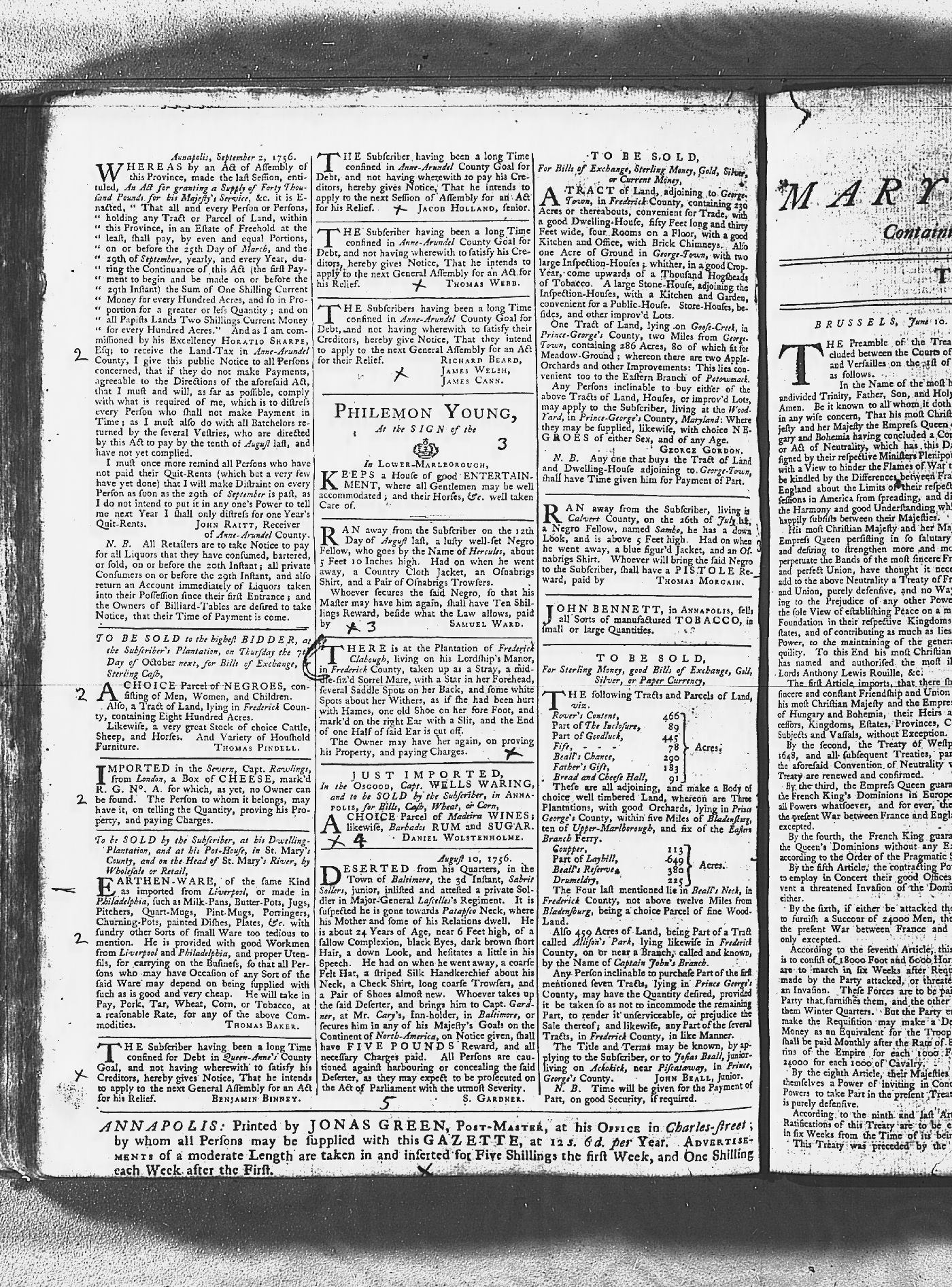 Maryland Gazette Collection MSA SC 2731 January 2, 1752 - October 19, 1758 M 1279 A Publication of the Archives of Maryland Online Image No: 1005 Enlarge and print image (3M) |