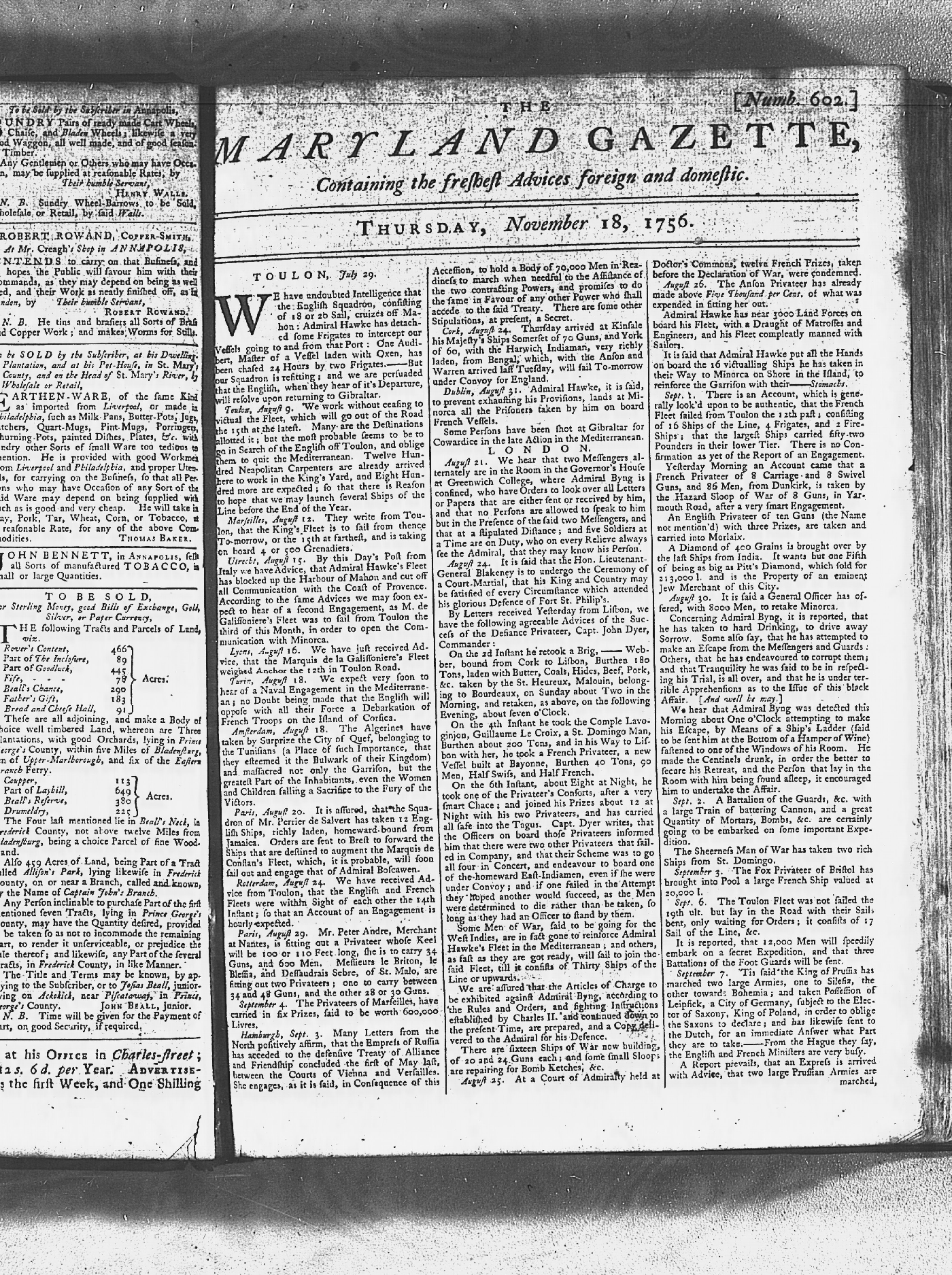 Maryland Gazette Collection MSA SC 2731 January 2, 1752 - October 19, 1758 M 1279 A Publication of the Archives of Maryland Online Image No: 1048 Enlarge and print image (3M) |