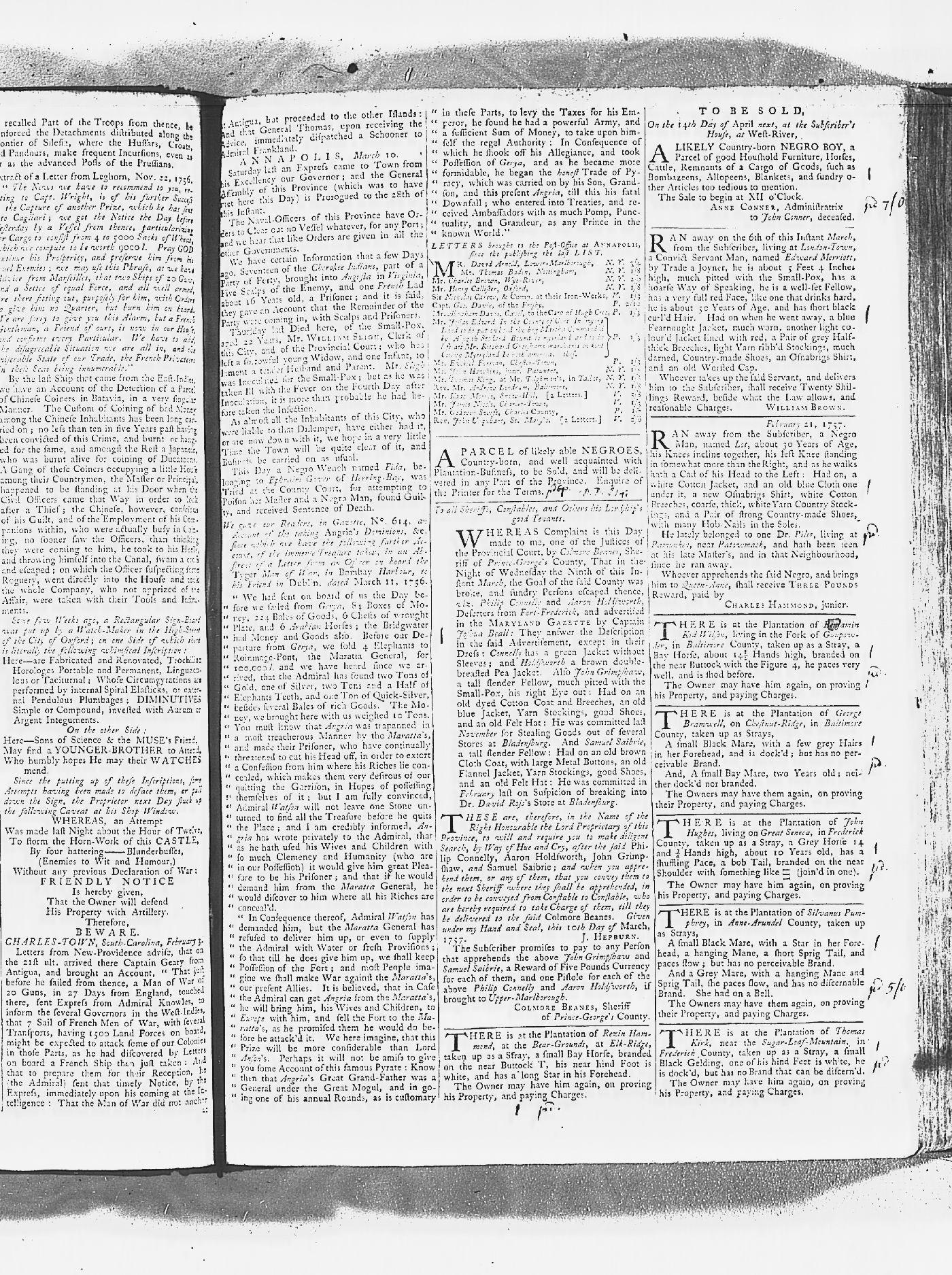 Maryland Gazette Collection MSA SC 2731 January 2, 1752 - October 19, 1758 M 1279 A Publication of the Archives of Maryland Online Image No: 1102 Enlarge and print image (3M) |