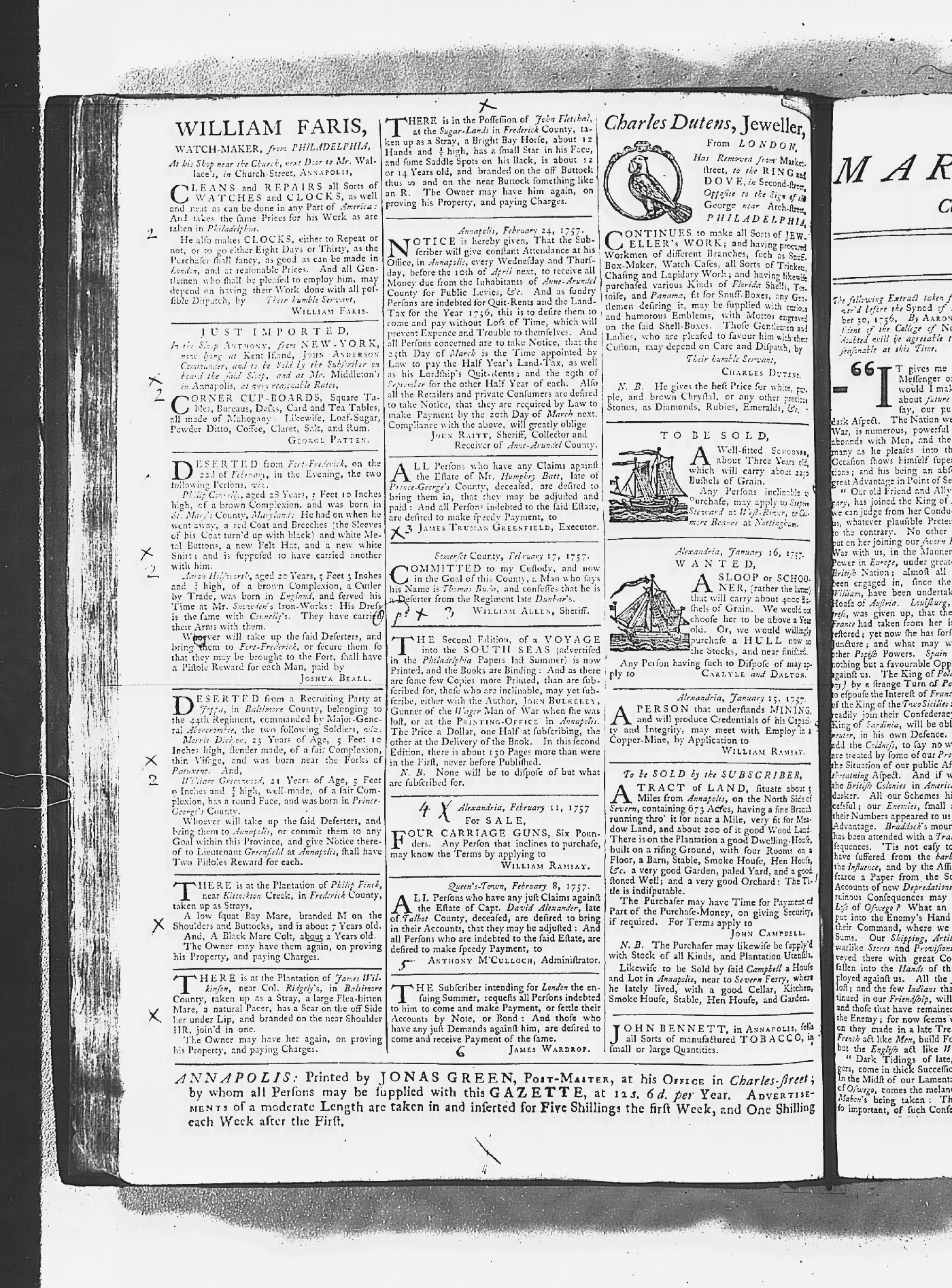 Maryland Gazette Collection MSA SC 2731 January 2, 1752 - October 19, 1758 M 1279 A Publication of the Archives of Maryland Online Image No: 1103 Enlarge and print image (3M) |
