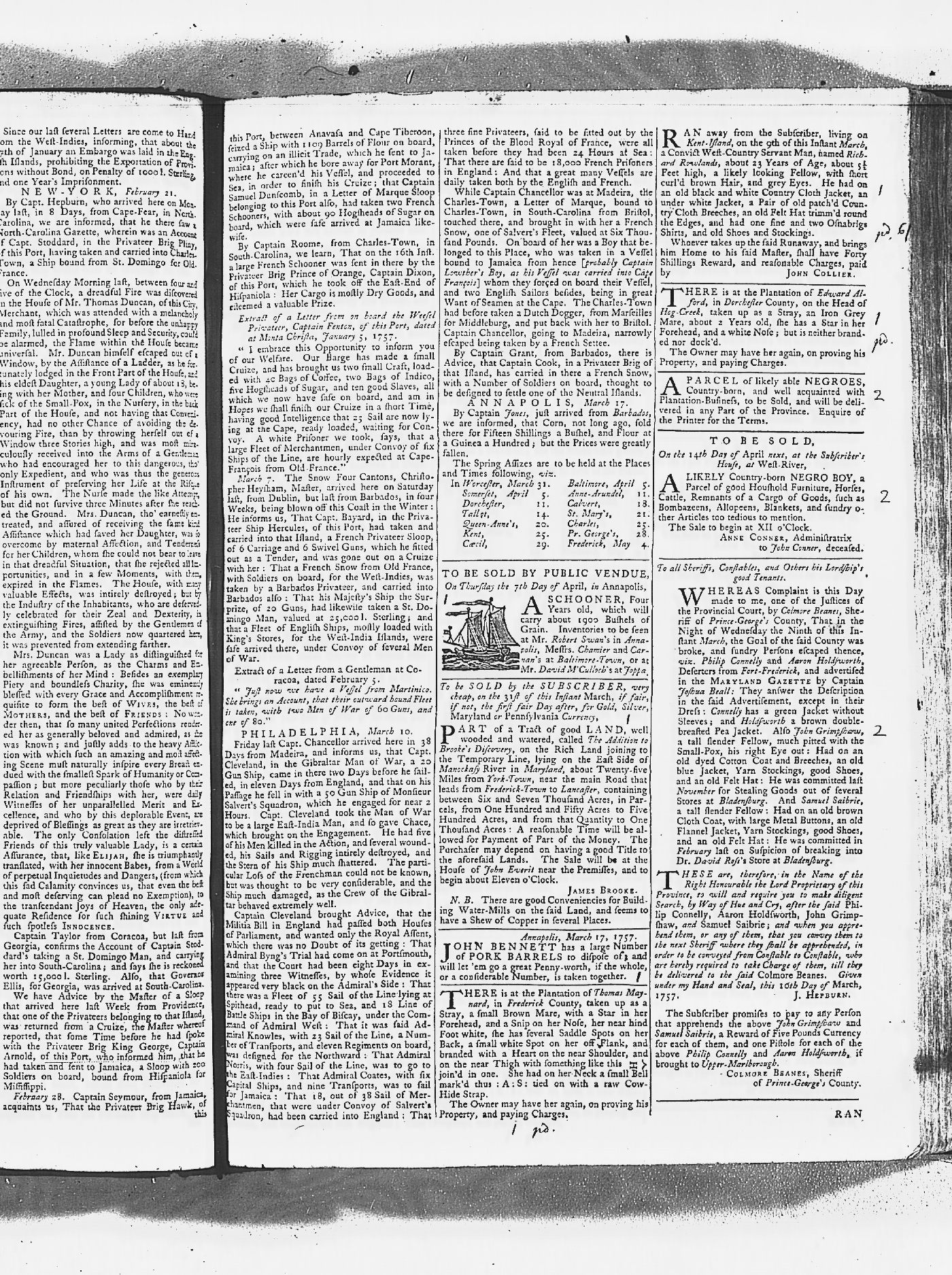 Maryland Gazette Collection MSA SC 2731 January 2, 1752 - October 19, 1758 M 1279 A Publication of the Archives of Maryland Online Image No: 1106 Enlarge and print image (3M) |