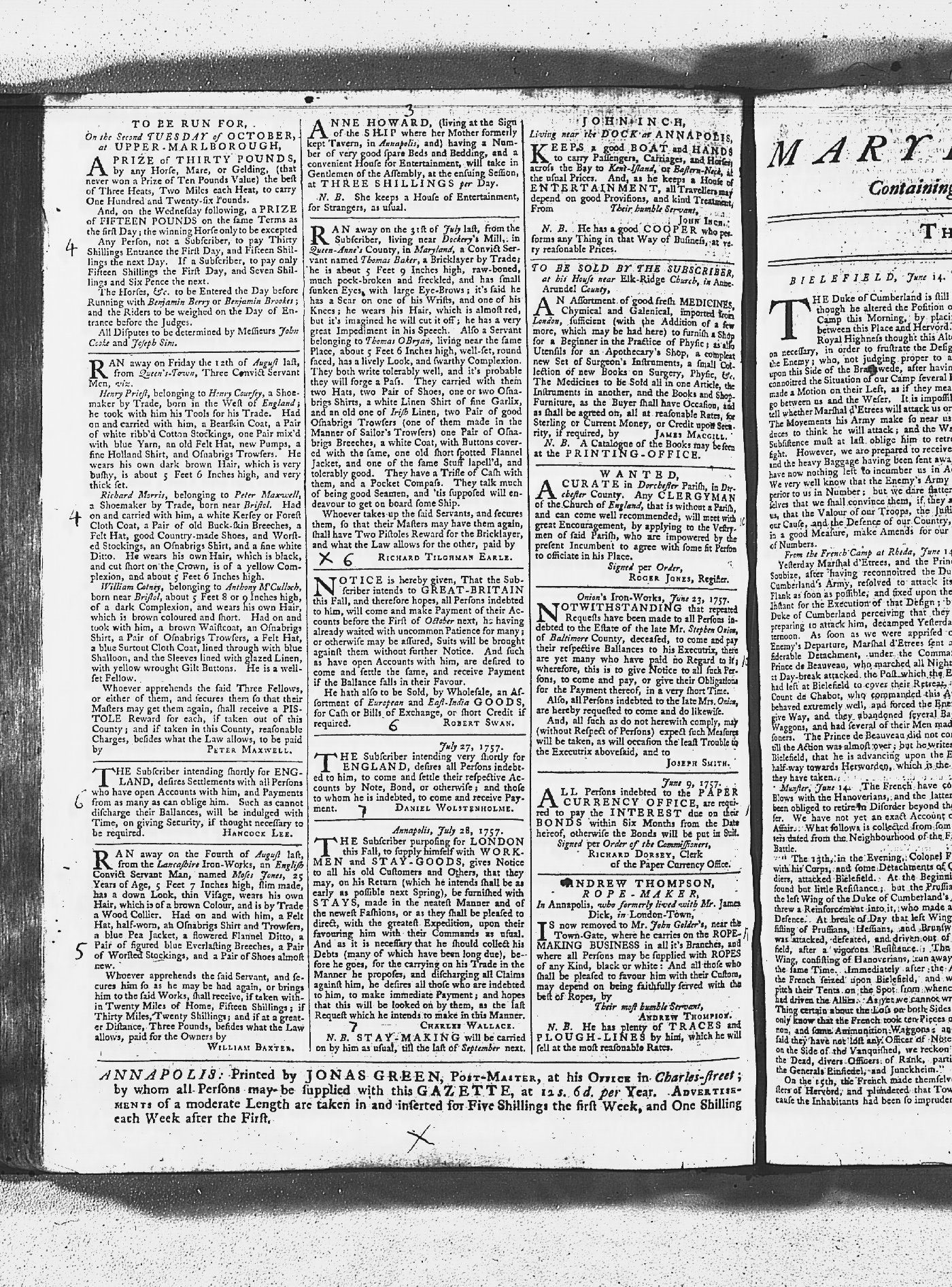 Maryland Gazette Collection MSA SC 2731 January 2, 1752 - October 19, 1758 M 1279 A Publication of the Archives of Maryland Online Image No: 1211 Enlarge and print image (3M) |