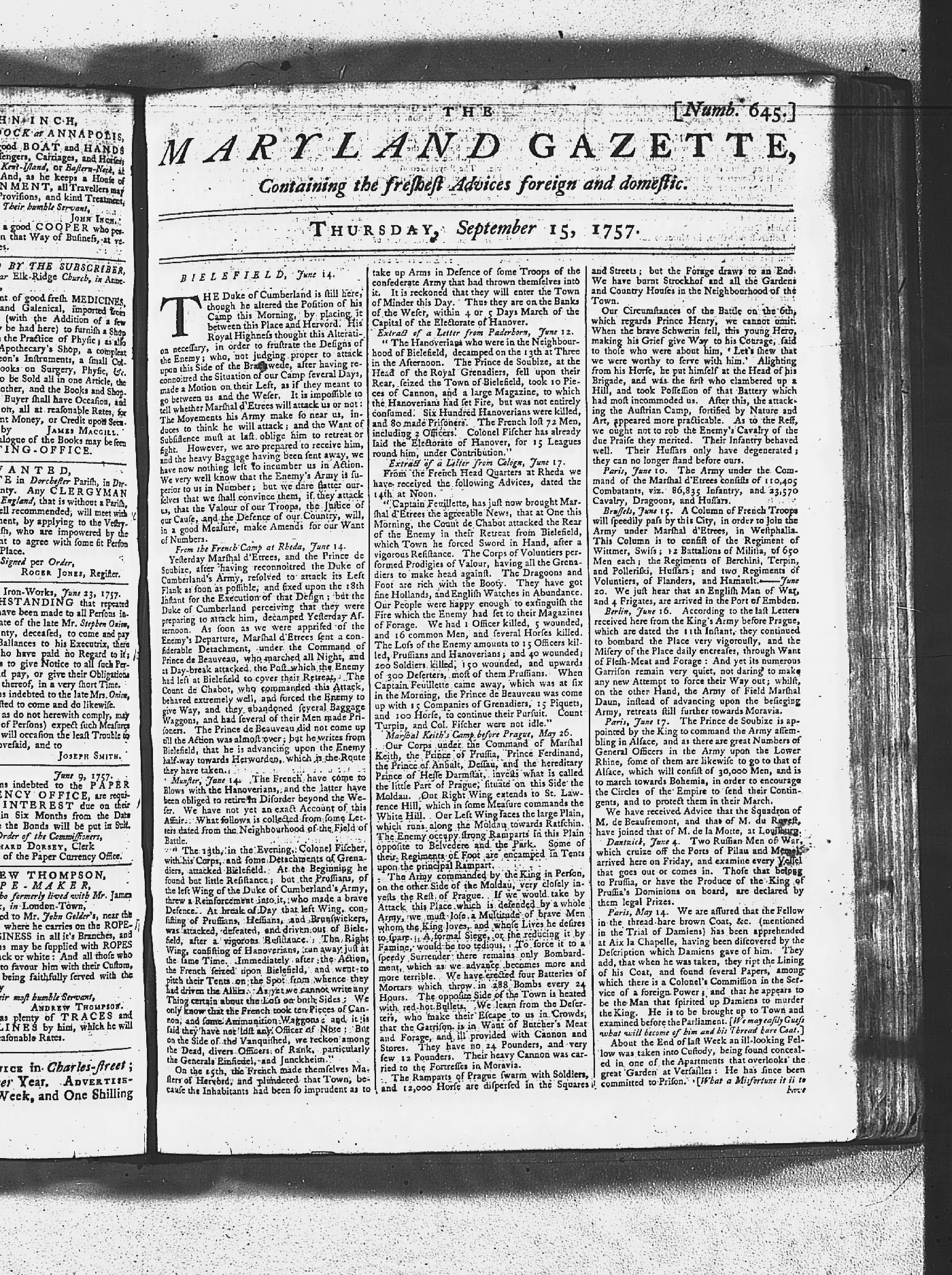 Maryland Gazette Collection MSA SC 2731 January 2, 1752 - October 19, 1758 M 1279 A Publication of the Archives of Maryland Online Image No: 1212 Enlarge and print image (3M) |