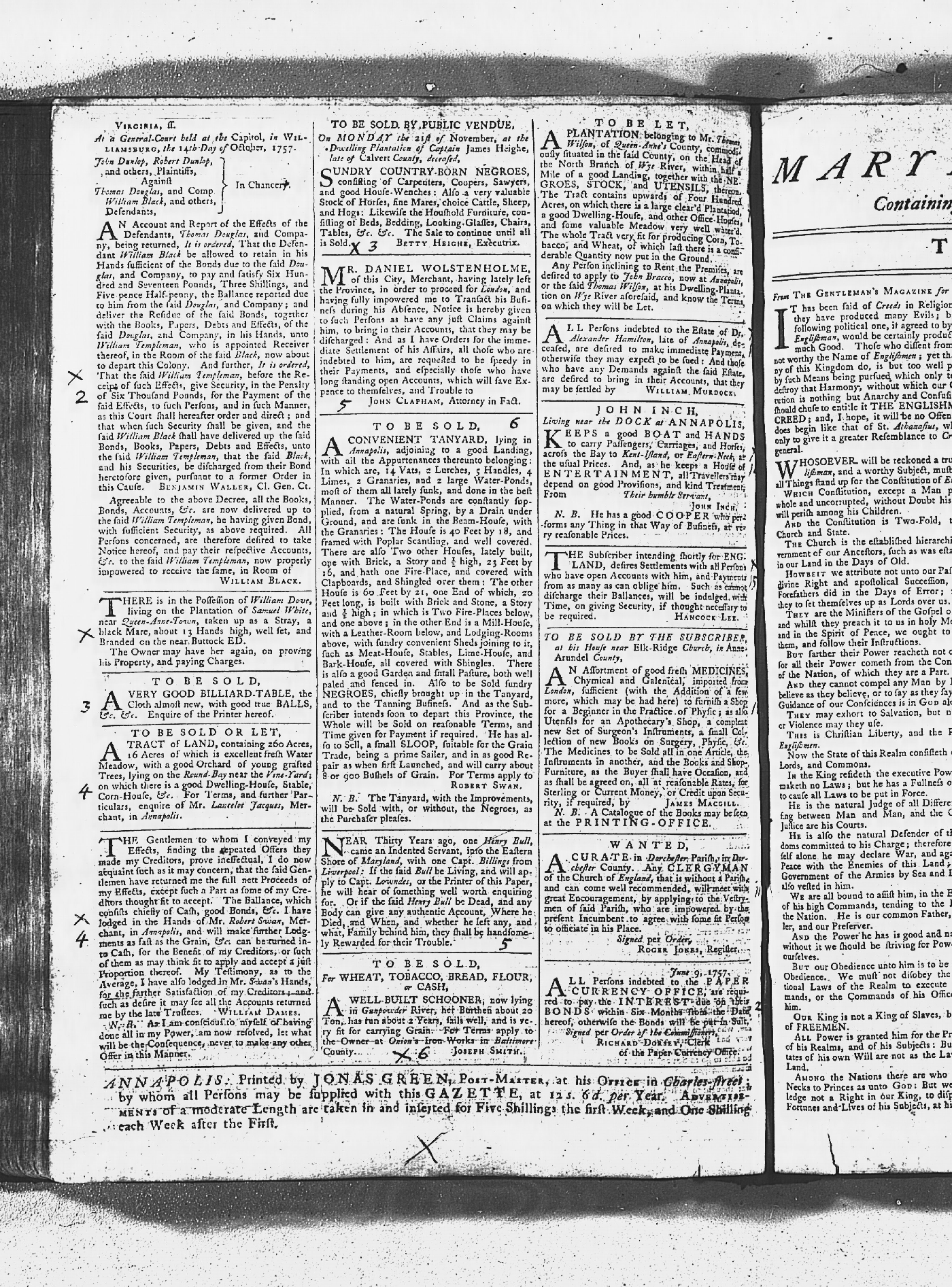 Maryland Gazette Collection MSA SC 2731 January 2, 1752 - October 19, 1758 M 1279 A Publication of the Archives of Maryland Online Image No: 1251 Enlarge and print image (3M) |