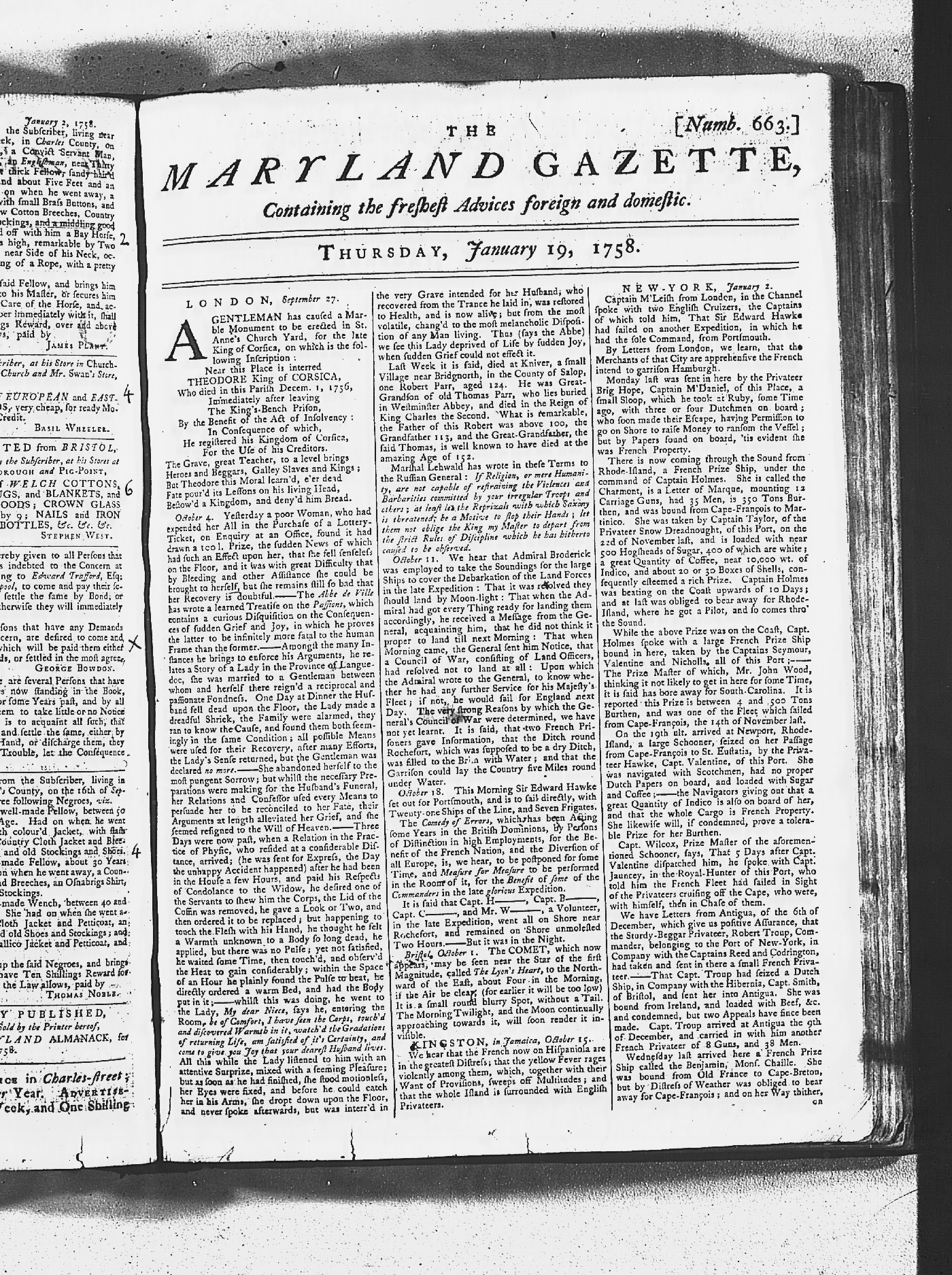 Maryland Gazette Collection MSA SC 2731 January 2, 1752 - October 19, 1758 M 1279 A Publication of the Archives of Maryland Online Image No: 1292 Enlarge and print image (3M) |