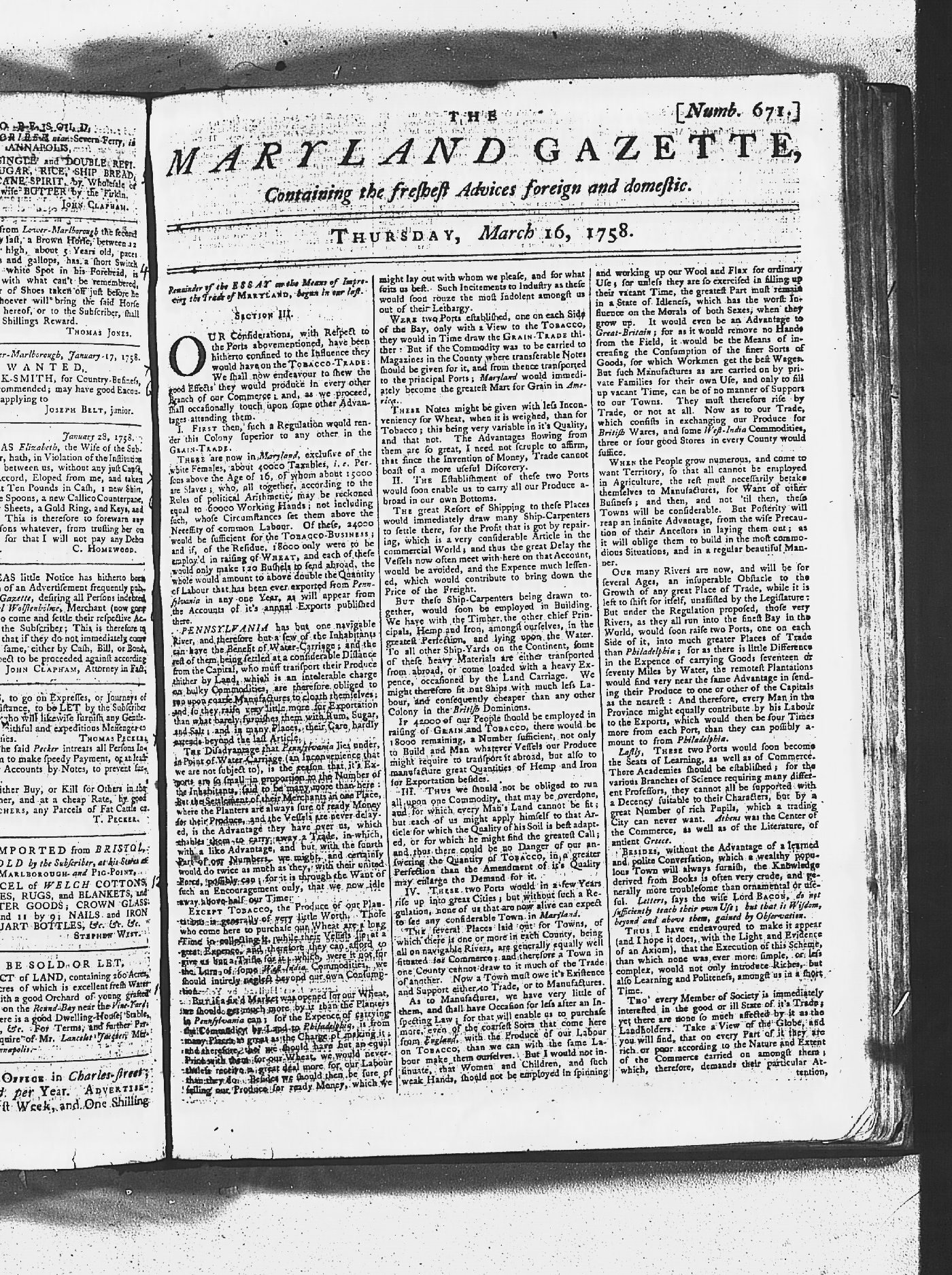 Maryland Gazette Collection MSA SC 2731 January 2, 1752 - October 19, 1758 M 1279 A Publication of the Archives of Maryland Online Image No: 1320 Enlarge and print image (3M) |