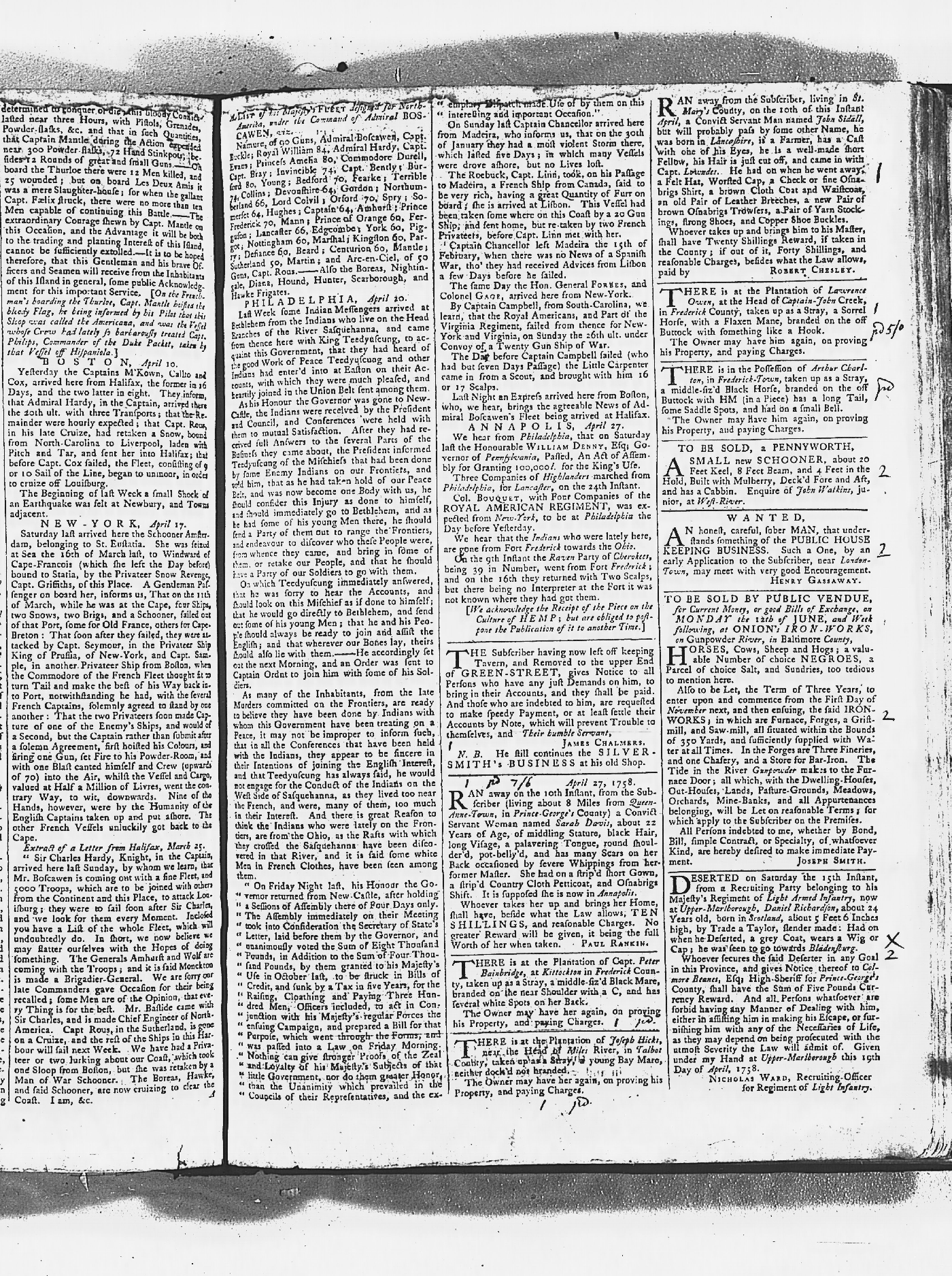 Maryland Gazette Collection MSA SC 2731 January 2, 1752 - October 19, 1758 M 1279 A Publication of the Archives of Maryland Online Image No: 1346 Enlarge and print image (3M) |