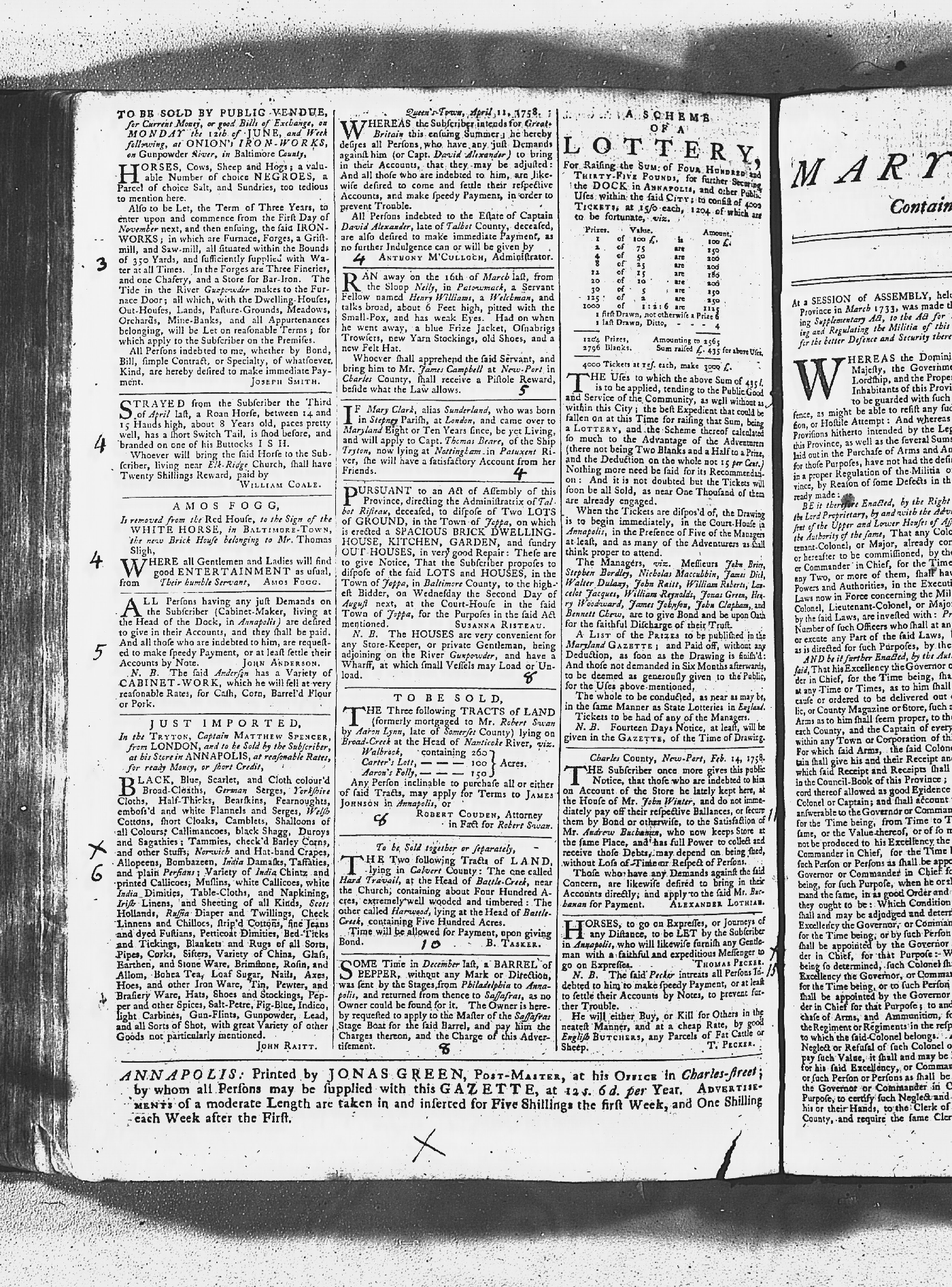 Maryland Gazette Collection MSA SC 2731 January 2, 1752 - October 19, 1758 M 1279 A Publication of the Archives of Maryland Online Image No: 1355 Enlarge and print image (3M) |