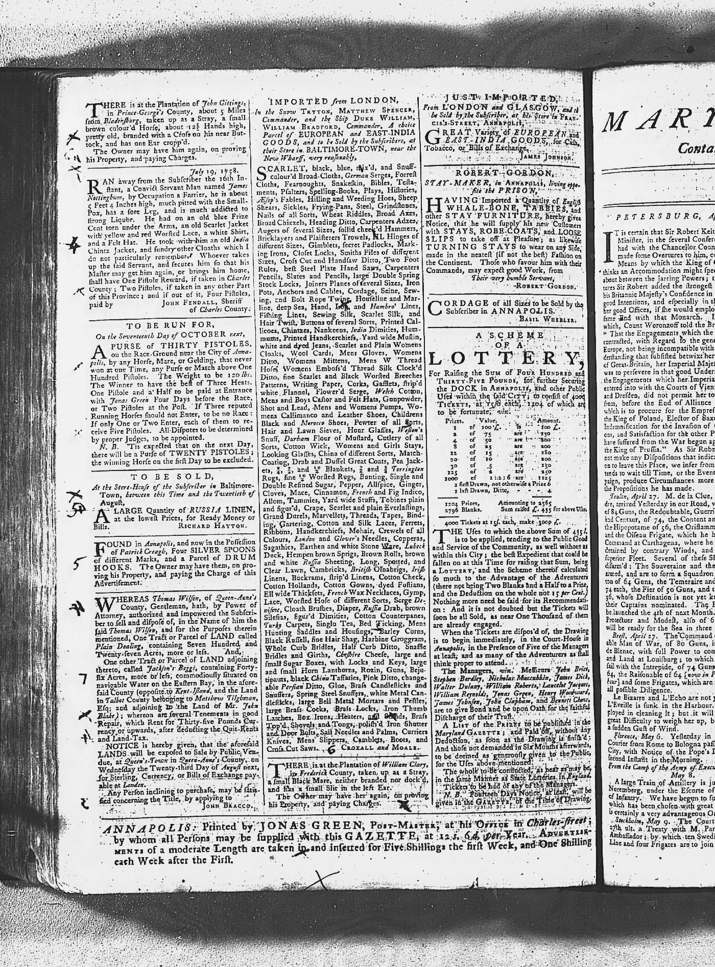 Maryland Gazette Collection MSA SC 2731 January 2, 1752 - October 19, 1758 M 1279 A Publication of the Archives of Maryland Online Image No: 1415 Enlarge and print image (3M) |