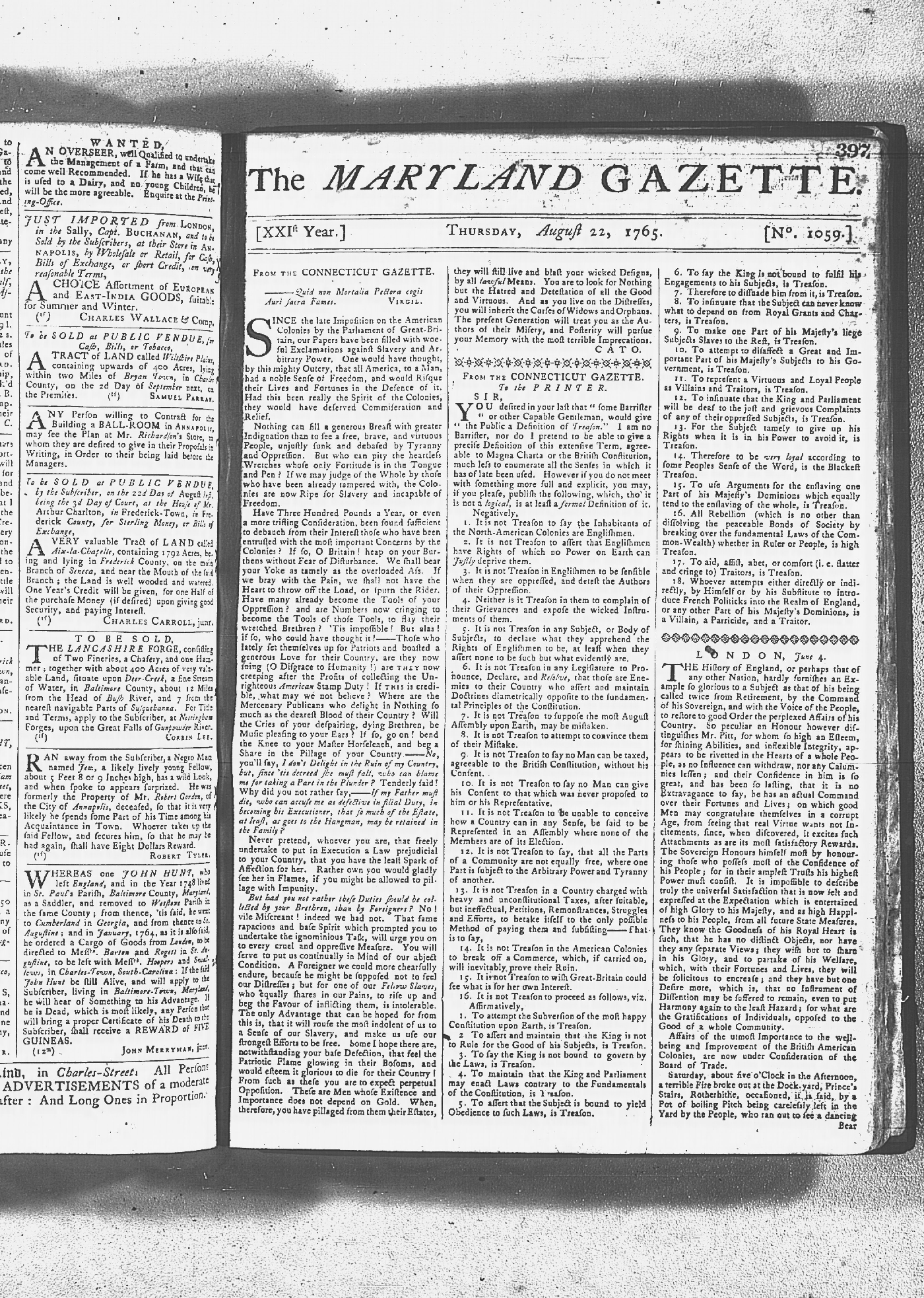 and December 10, 1765