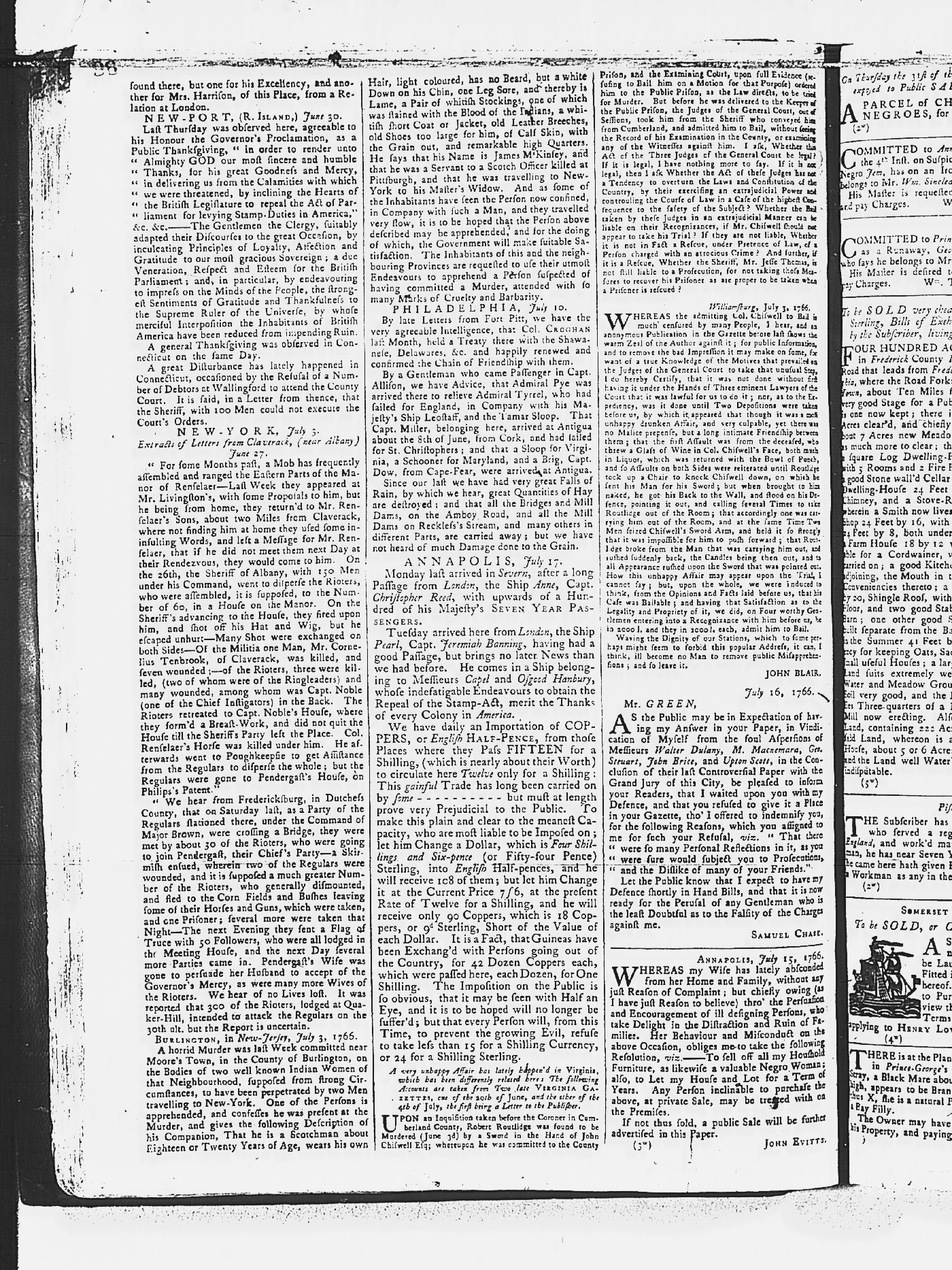 Maryland Gazette Collection MSA SC 2731 January 30, 1766 - December 26, 1771 M 1281 A Publication of the Archives of Maryland Online Image No: 105 Enlarge and print image (3M) |